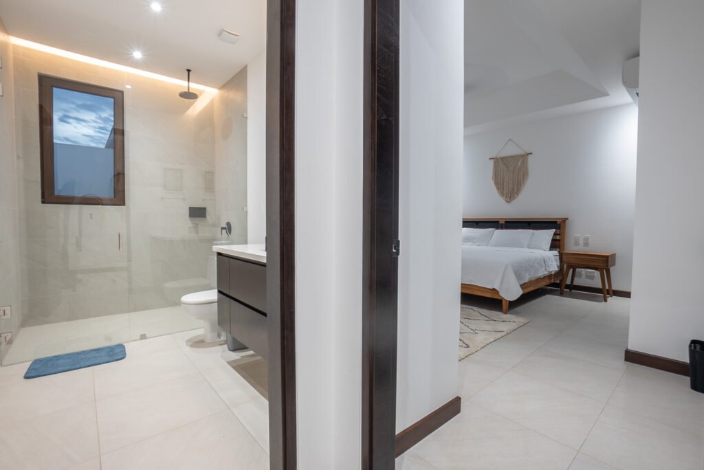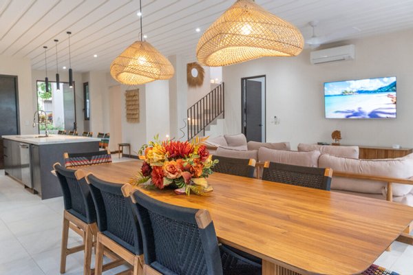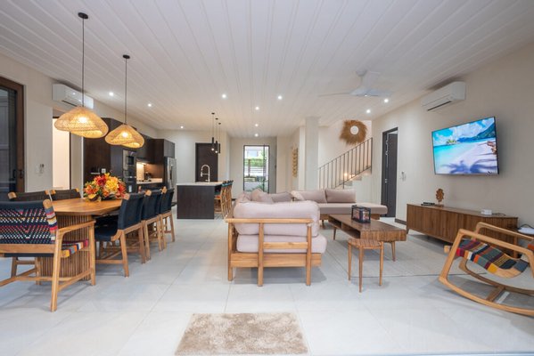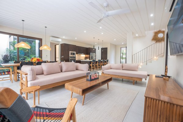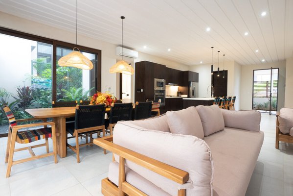 Entdecken Sie Casa 64 - eine atemberaubende Villa mit 5 Schlafzimmern und 5,5 Bädern , in der modernes Design auf Öko-Luxus trifft, im Herzen von Tamarindo Park, einer privaten, umweltbewussten Gemeinde an Costa Ricas Goldküste.