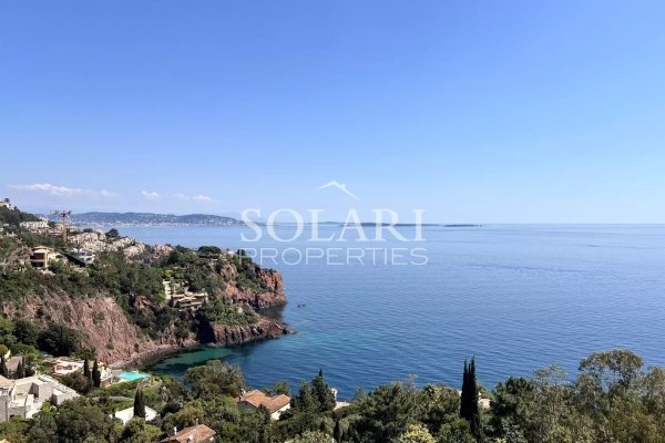 Eingebettet in ein prestigeträchtiges und sicheres Anwesen in Théoule-sur-Mer bietet dieses seltene Anwesen ein außergewöhnliches Wohnumfeld mit privatem Zugang zu einer abgelegenen Bucht und einem atemberaubenden Panoramablick über die Bucht von Cannes.