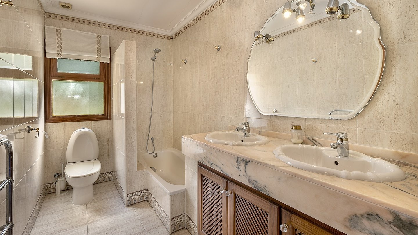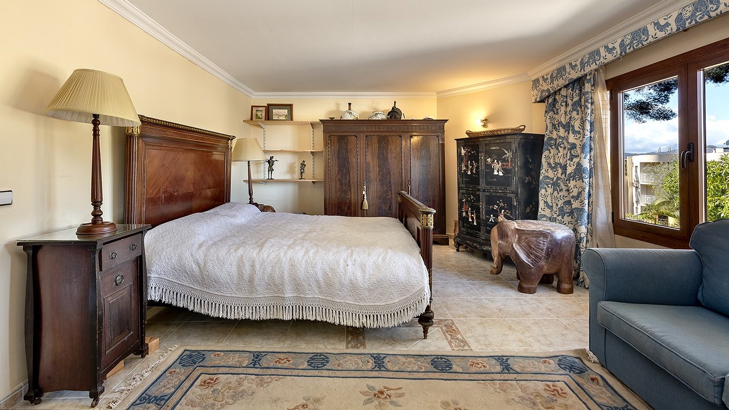 Mit insgesamt 5 lichtdurchfluteten Schlafzimmern und 4 modernen Badezimmern, davon 2 en-suite, bietet diese Immobilie nicht nur ausreichend Raum für Ihre Familie und Gäste, sondern auch erstklassige Lebensqualität. Das Immobilienangebot besticht unter anderem durch eine durchdachte Innenausstattung. Die offene Einbauküche ist mit modernen Elektrogeräten ausgestattet und lädt zum gemeinschaftlichen Kochen ein. Für zusätzlichen Stauraum sorgt ein praktischer Abstellraum und ein Hauswirtschaftsraum. Das Gäste-Apartment mit separatem Zugang und eigenem Bad bietet Besuchern eine äußerst komfortable Unterkunft.Der Wohnbereich ist mit einem offenen Kamin ausgestattet, der an kühleren Abenden eine angenehme Atmosphäre schafft und zudem auch als attraktives Designelement dient. Für den optimalen Komfort bei hohen Temperaturen ist eine Klimaanlage (w/k) integriert. Im Außenbereich befindet sich ein Süßwasser-Pool mit Außendusche, der zum Baden und Entspannen einlädt. Parkmöglichkeiten sind selbstverständlich reichlich vorhanden. Es stehen Ihnen 4 PKW-Stellplätze, 2 Garagenplätze und 2 Carport-Stellplätze zur Verfügung, gesichert durch ein elektrisches Zufahrtstor.