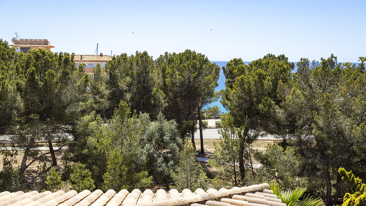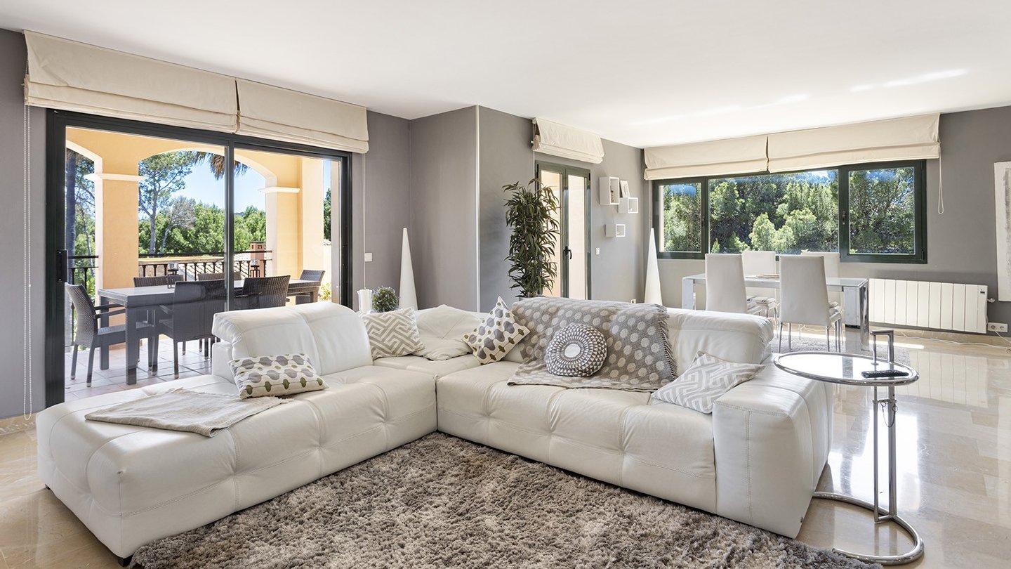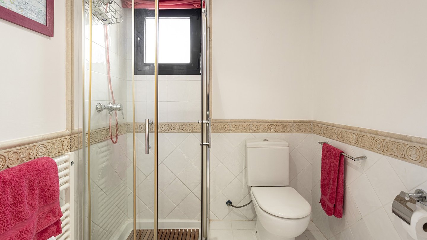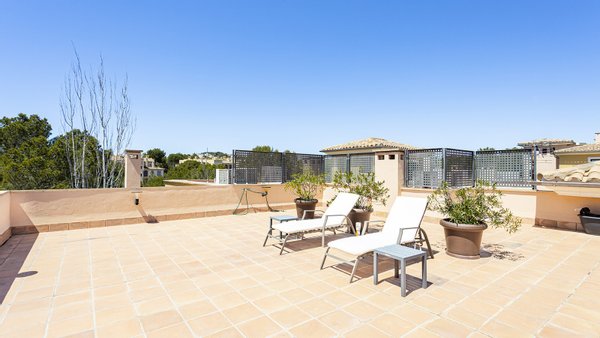 Mit einer bebauten Fläche von 208m2 ist das Anwesen in drei geräumige Schlafzimmer, alle mit Einbauschränken unterteilt. Zwei dieser Schlafzimmer verfügen über ein eigenes Bad, wovon ein Schlafzimmer über eine eigene Terrasse mit Teilmeerblick verfügt und sich relativ weit von den anderen beiden Schlafzimmern befindet. Somit ist das Schlafzimmer ideal für Familien ,diejenigen, die es zu Arbeitszwecken nutzen möchten oder um reichlich Privatsphäre zu genießen möchten. Das zentrale Merkmal der Immobilie ist das geräumige und raffinierte Wohnzimmer, das das Potenzial hat, vergrößert zu werden, sobald die Trennwand zur Küche entfernt wird. Vom Wohnzimmer aus gelangt man auch auf die große überdachte Terrasse, die sich perfekt zum Essen oder für einen Aperitif im Freien eignet, oder einfach nur zum Entspannen im Schatten oder auf einer Sonnenliege. Eine Treppe führt auf die geräumige Dachterrasse, eine Fläche von ca. 60m2, mit vielen Möglichkeiten der Nutzung und keine Nachbarn! Die Südseite bietet einen Blick auf den Golfplatz von Santa Ponsa, während man im Westen das Meer bewundern kann, wenn auch etwas verdeckt durch die Pinien des nahegelegenen Naturgebietes.Ein Parkplatz ist natürlich auch vorhanden. Es gibt einen Tiefgaragenplatz für Ihr Fahrzeug, der durch ein elektrisches Zufahrtstor gesichert ist. Schließlich ist zu erwähnen, dass sich neben dem Eingang auch ein Waschraum mit Waschmaschine und Trockner befindet. Im Preis inbegriffen sind auch ein 24,9 m2 großer Abstellraum und ein Privatparkplatz, welche sich beide in der Tiefgarage befinden.