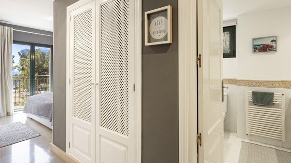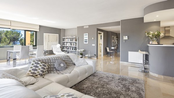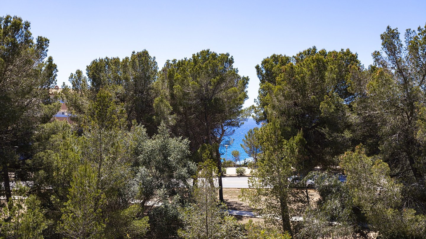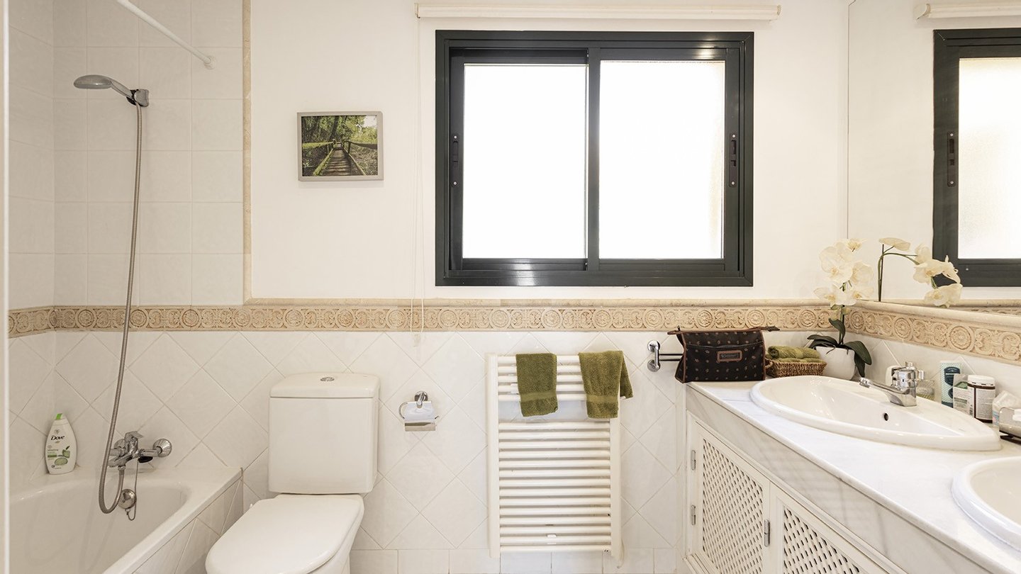 Mit einer bebauten Fläche von 208m2 ist das Anwesen in drei geräumige Schlafzimmer, alle mit Einbauschränken unterteilt. Zwei dieser Schlafzimmer verfügen über ein eigenes Bad, wovon ein Schlafzimmer über eine eigene Terrasse mit Teilmeerblick verfügt und sich relativ weit von den anderen beiden Schlafzimmern befindet. Somit ist das Schlafzimmer ideal für Familien ,diejenigen, die es zu Arbeitszwecken nutzen möchten oder um reichlich Privatsphäre zu genießen möchten. Das zentrale Merkmal der Immobilie ist das geräumige und raffinierte Wohnzimmer, das das Potenzial hat, vergrößert zu werden, sobald die Trennwand zur Küche entfernt wird. Vom Wohnzimmer aus gelangt man auch auf die große überdachte Terrasse, die sich perfekt zum Essen oder für einen Aperitif im Freien eignet, oder einfach nur zum Entspannen im Schatten oder auf einer Sonnenliege. Eine Treppe führt auf die geräumige Dachterrasse, eine Fläche von ca. 60m2, mit vielen Möglichkeiten der Nutzung und keine Nachbarn! Die Südseite bietet einen Blick auf den Golfplatz von Santa Ponsa, während man im Westen das Meer bewundern kann, wenn auch etwas verdeckt durch die Pinien des nahegelegenen Naturgebietes.Ein Parkplatz ist natürlich auch vorhanden. Es gibt einen Tiefgaragenplatz für Ihr Fahrzeug, der durch ein elektrisches Zufahrtstor gesichert ist. Schließlich ist zu erwähnen, dass sich neben dem Eingang auch ein Waschraum mit Waschmaschine und Trockner befindet. Im Preis inbegriffen sind auch ein 24,9 m2 großer Abstellraum und ein Privatparkplatz, welche sich beide in der Tiefgarage befinden.