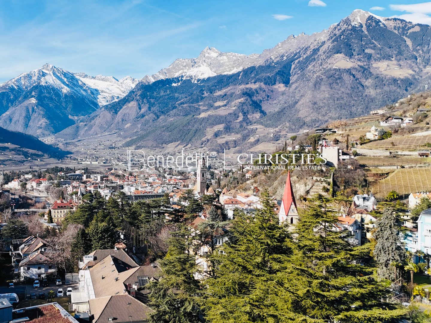 Diese exklusive Luxuswohnung befindet sich in ruhiger Panoramalage oberhalb von Meran und bietet höchsten Wohnkomfort gepaart mit absoluter Privatsphäre. Umgeben von Weinbergen und Olivenbäumen eröffnet sich von der großzügigen Terrasse ein atemberaubender Blick über die Südtiroler Bergwelt.