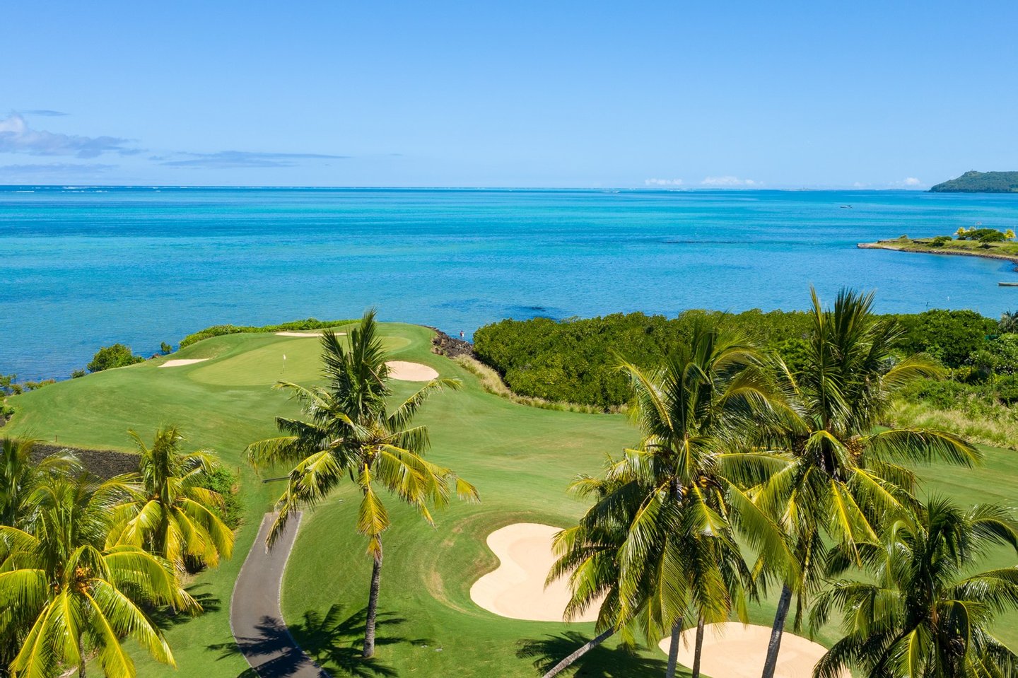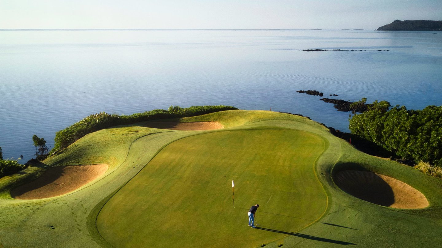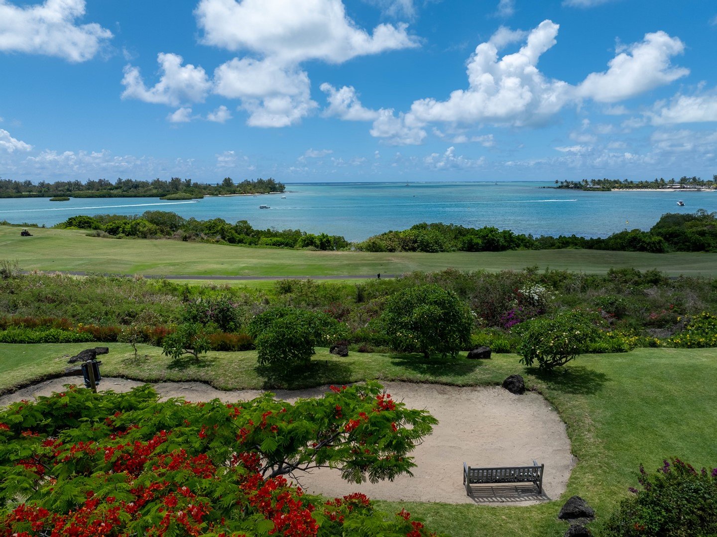 Nestenn bietet eine außergewöhnliche Gelegenheit, ein Stück Paradies auf dem prestigeträchtigen Anwesen Anahita in Beau Champ zu besitzen. Dieses atemberaubende Anwesen ist der Inbegriff von Luxus und bietet einen atemberaubenden Panoramablick auf die türkisfarbene Lagune, die ikonische Île aux Cerfs und die üppig grünen Fairways des Golfplatzes. Mit 950 m² eleganter Wohnfläche auf einem weitläufigen 3600 m² großen Grundstück bietet dieses Haus unübertroffene Privatsphäre und Ruhe.