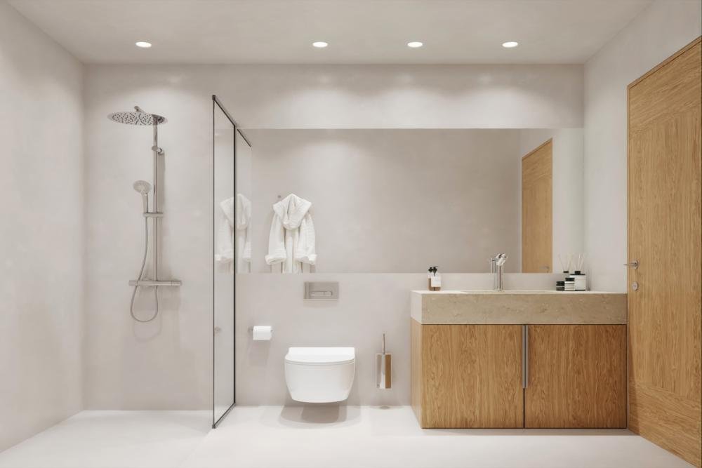 Die Reihenwohnungen mit einem oder zwei Schlafzimmern bieten ein außergewöhnliches Wohnerlebnis im Innen- und Außenbereich. Die in einer raffinierten, neutralen Ästhetik gestalteten Residenzen verfügen über großzügige Terrassen mit freiem Blick auf das Meer – ideal, um die atemberaubende Umgebung und die freie Aussicht zu genießen.