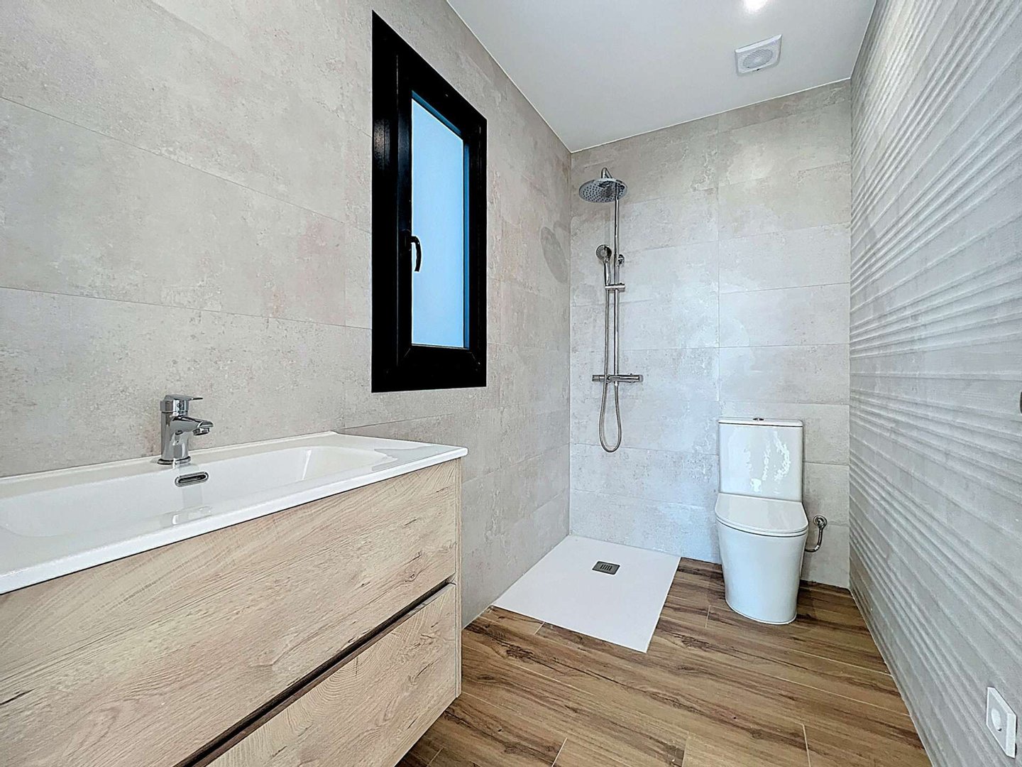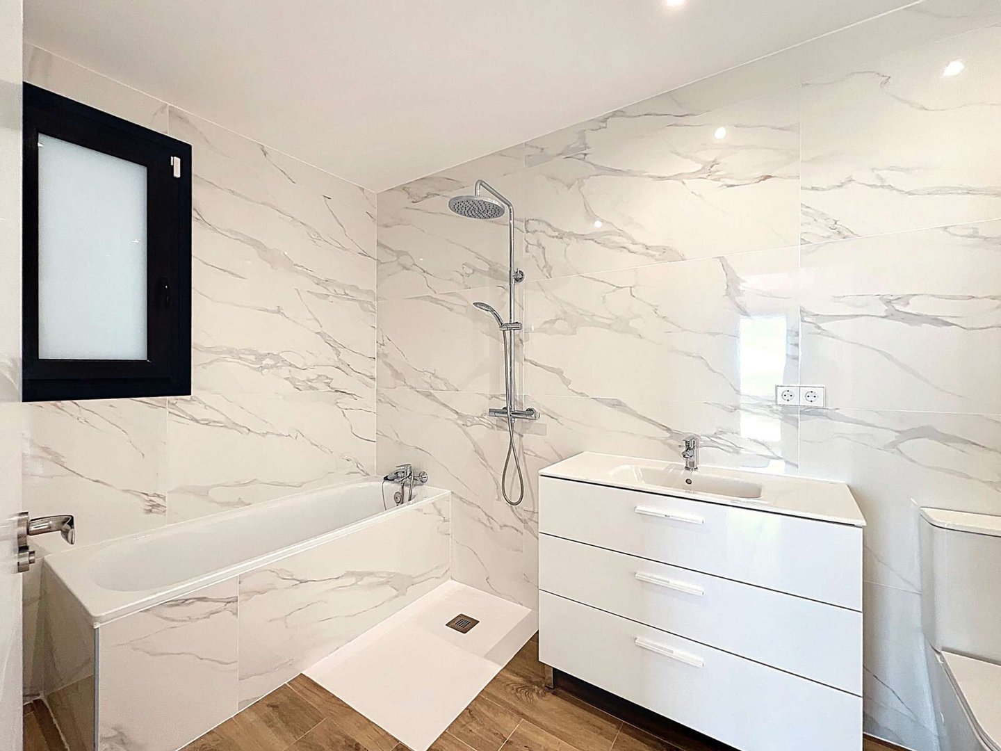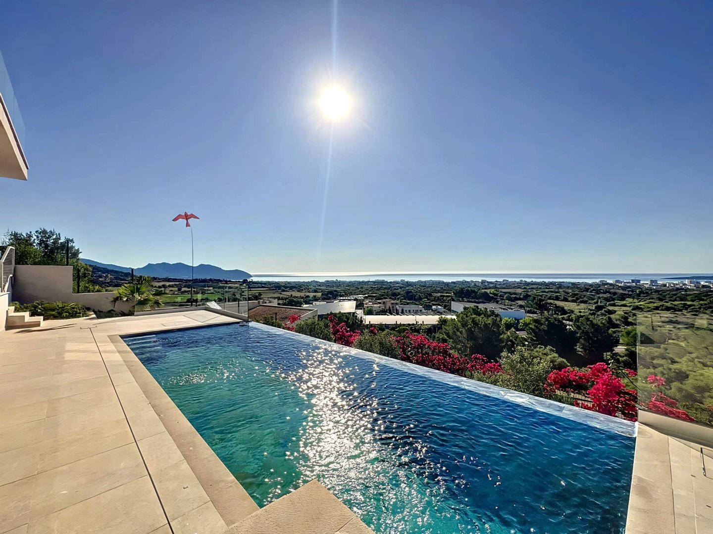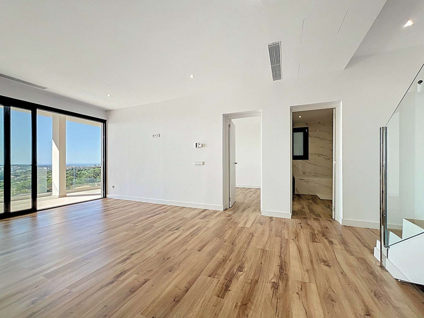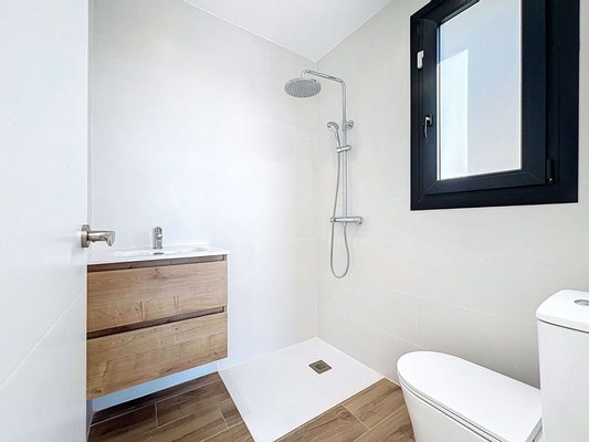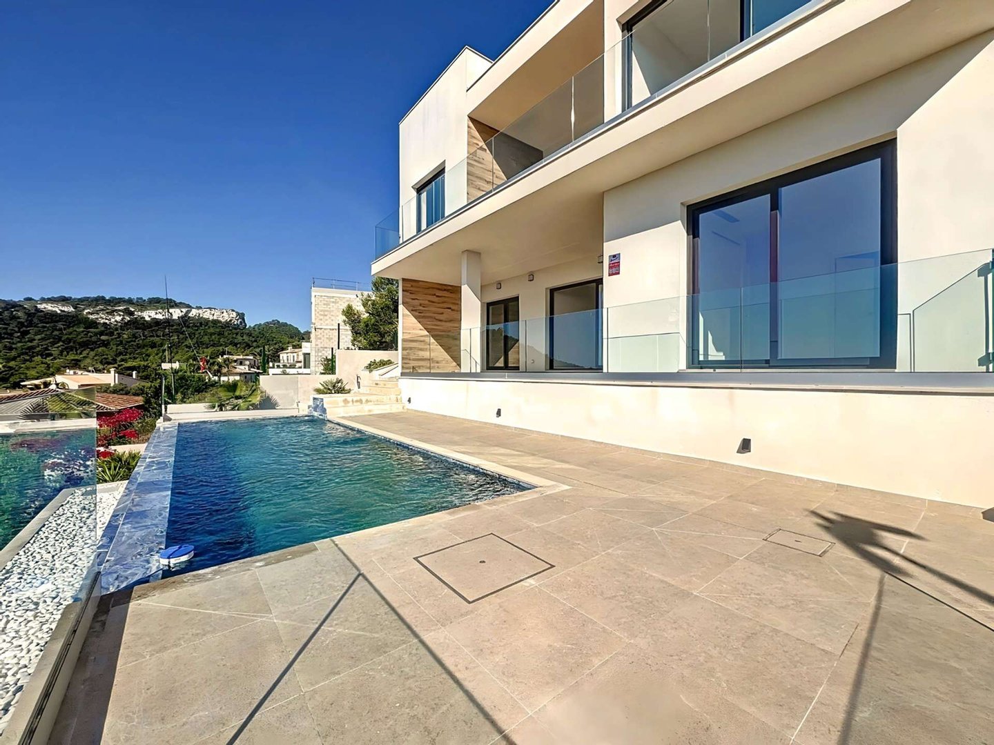 Außerdem verfügt die Villa über einen offenen Stellplatz für zwei Fahrzeuge und hochwertige Ausstattungen: zentrale Klimaanlage, Fußbodenheizung, Climalit-Doppelverglasung, PVC-Fenster, Alarmsystem und Hausautomatisierung. Parkettböden und eine hervorragende Südostausrichtung sorgen den ganzen Tag über für natürliches Licht.