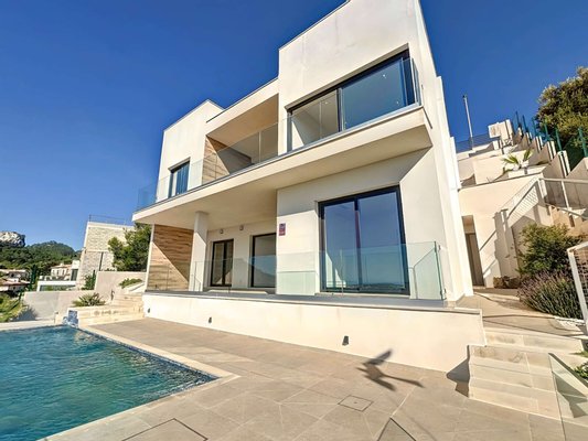 Diese neu gebaute Villa befindet sich in einer ruhigen Wohngegend und besticht durch ihr modernes Design sowie einen spektakulären Panoramablick auf die Bucht von Cala Millor. Die Immobilie liegt nur 5 Autominuten von den Stränden, 20 Minuten von der
