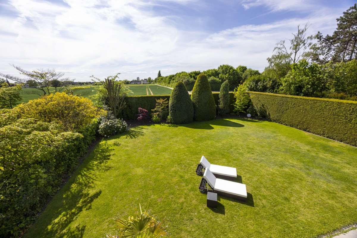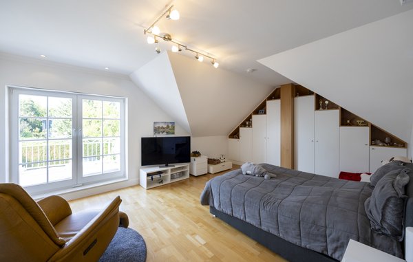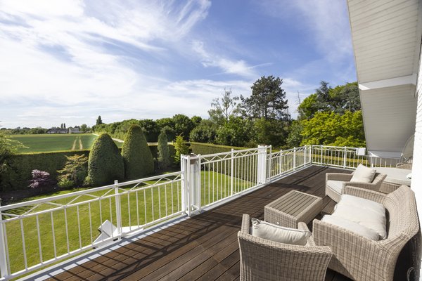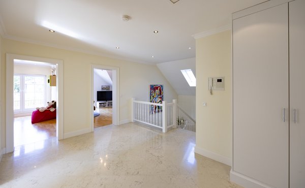 Insgesamt ist die Aufteilung absolut durchdacht und mit 4 großen Schlafzimmern und zwei Bädern im Obergeschoss als familienfreundlich zu bezeichnen. 2 Schlafzimmer sind zum Garten ausgerichtet und haben Zugang zur ca. 44 m² großen Süd-Terrasse mit Blick über die Felder und den Golfpark. Die anderen beiden Schlafzimmer sind nach Norden ausgerichtet und verfügen ebenfalls über einen Balkon.