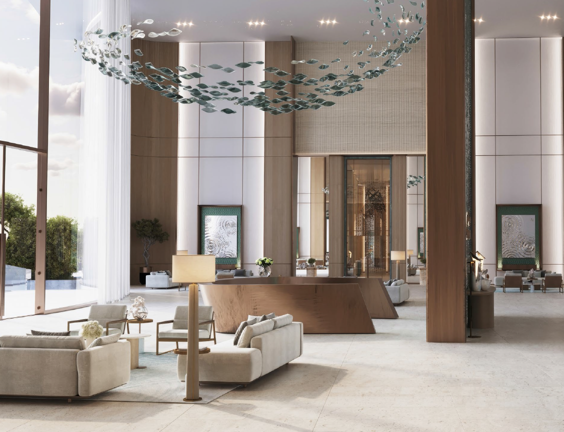 Als Sie die imposante 25-stöckige Fassade betreten, erscheint sie Ihnen wie eine fließende architektonische Skulptur, inspiriert von der Anmut des Wassers. Das wellenartige Design schimmert harmonisch im Einklang mit dem sich ständig verändernden