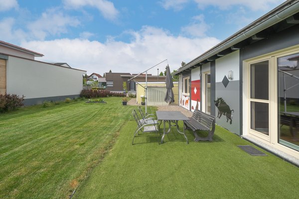 Ein weiteres Highlight dieser Immobilie ist die schöne Terrasse, die direkt vom Wohnzimmer aus zu erreichen ist. Hier können Sie entspannte Stunden im Freien verbringen und den Ausblick auf Ihren eigenen Garten genießen.
