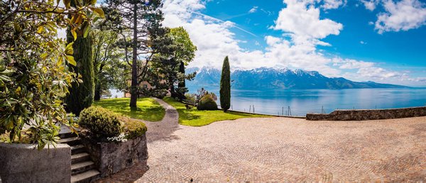 Durch die dominante Lage auf dem Rocher de St-Saphorin kann man nur das sagenhafte, allgegenwärtige Panorama bewundern. Ein atemberaubender Blick von Ost nach West.