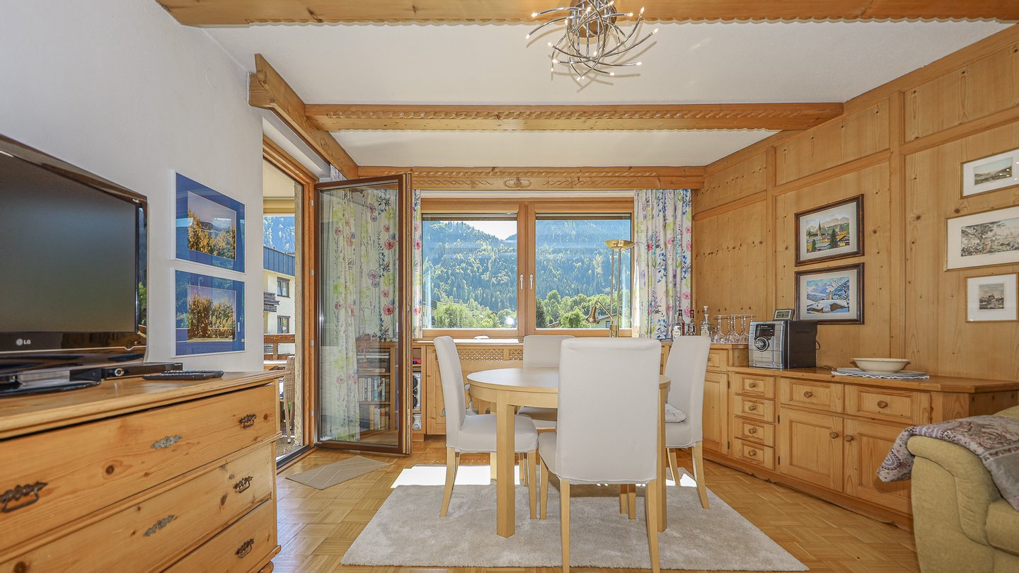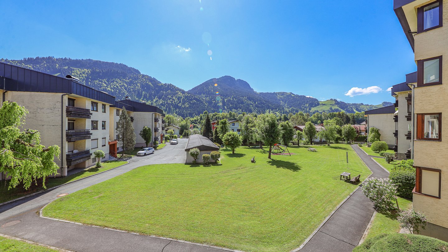 Von der Wohnung bietet sich ein schöner Ausblick auf den Hahnenkamm.