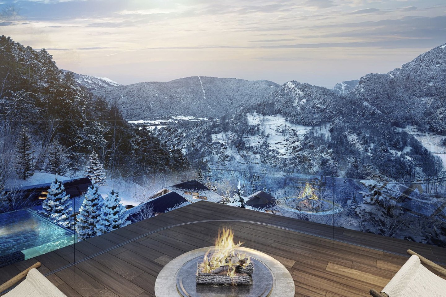 Die Oberflächen sind elegant und von höchster Qualität, und das Design des Anwesens kombiniert moderne Elemente wie große Fenster mit klassischer andorranischer Architektur aus Stein und Holz, um sich nahtlos in die Umgebung zu integrieren und gleichzeitig die Essenz des Landes zu bewahren.