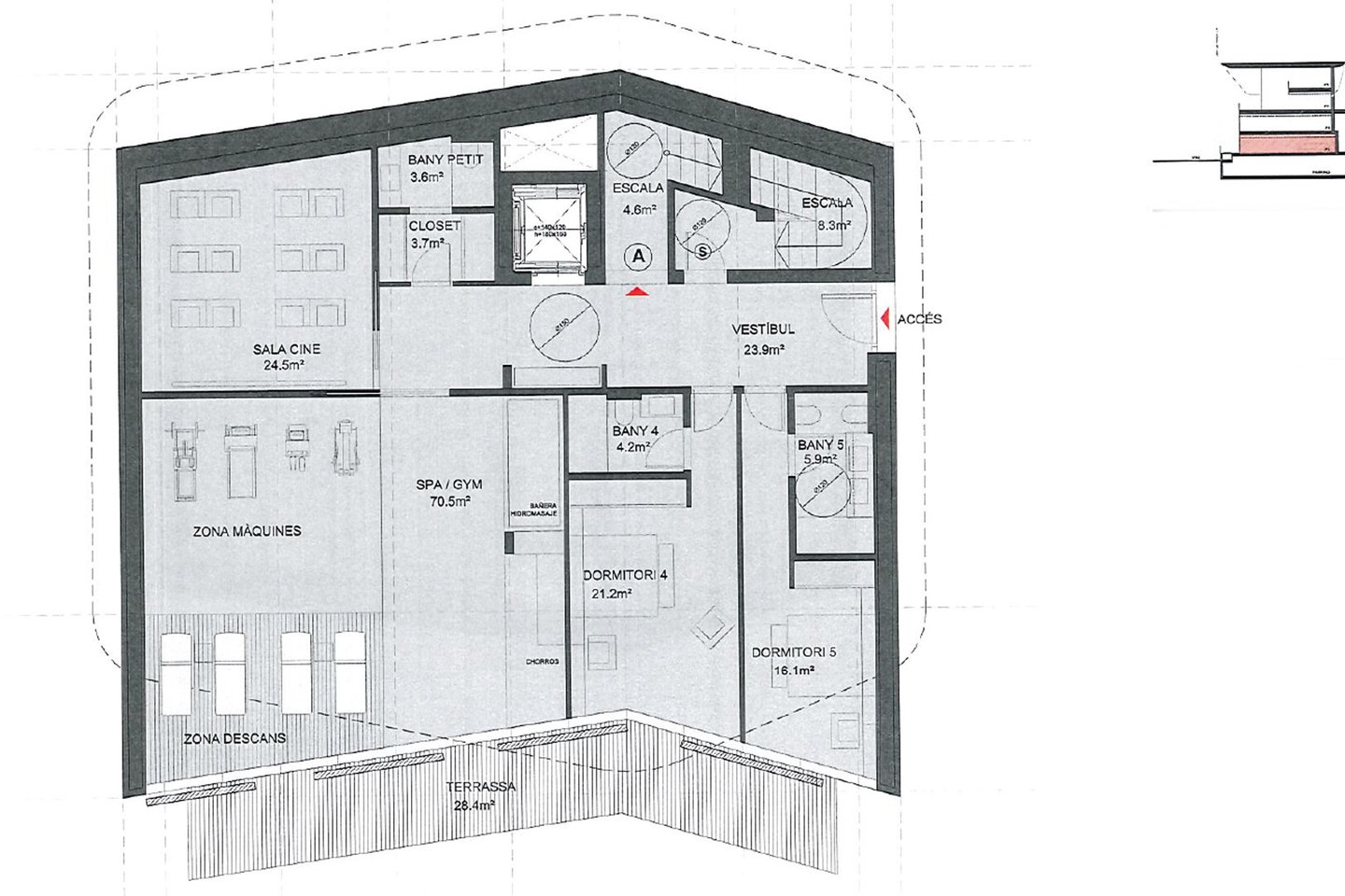 Es handelt sich um ein neu gebautes Anwesen von ca. 669 m², das über mehrere Terrassen verfügt, die optimal ausgerichtet sind, um ein Maximum an natürlichem Licht zu bieten und gleichzeitig den herrlichen Blick auf Ordino und seine Täler zu genießen.