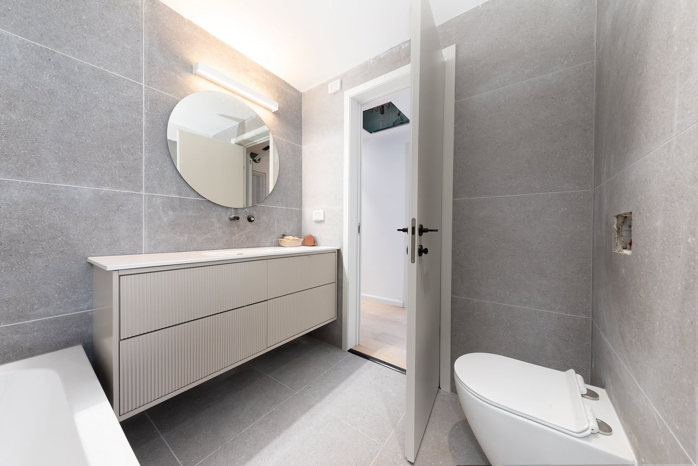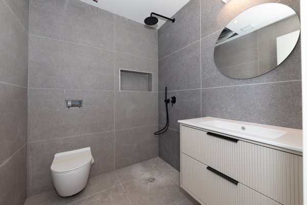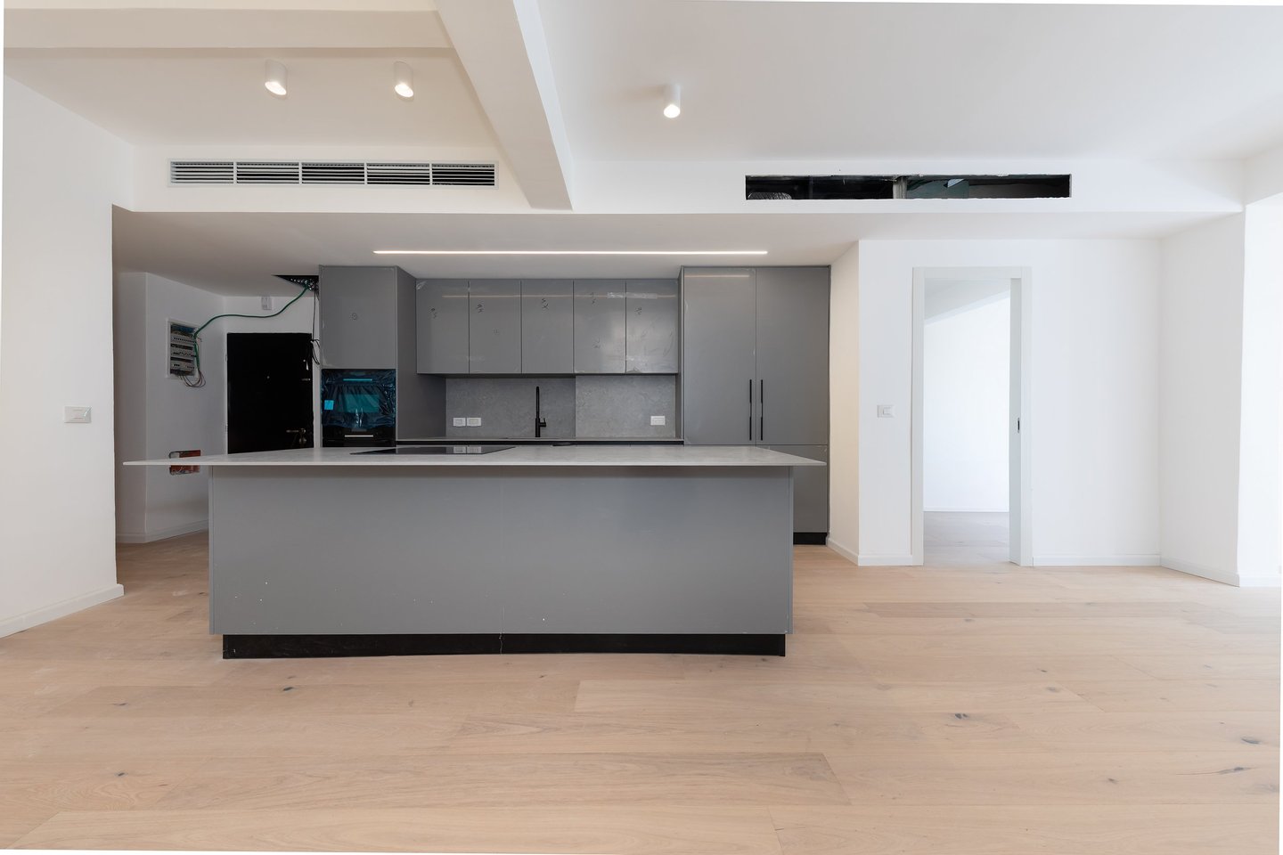 Eine moderne und aufgewertete Wohnung im Courtyard-Projekt mit intelligentem Design, einem außergewöhnlich geräumigen Wohnbereich, breiten Öffnungen und viel natürlichem Licht. Die Wohnung verfügt über eine außergewöhnlich hohe Ausstattung, eine integrierte Küche von De Cucina, die mit luxuriösen Geräten von Bosch und Grundig ausgestattet ist, hochwertiges Eichenparkett und eine fortschrittliche VRF-Klimaanlage.