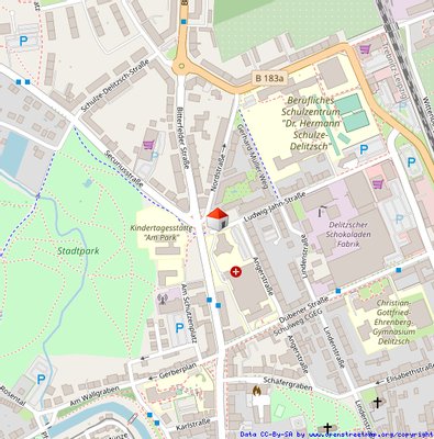 Die Gewerbeeinheit befindet sich in zentraler Lage an der Nordstraße 2 in Delitzsch, einem aufstrebenden Wirtschaftsstandort im Einzugsgebiet Leipzigs.