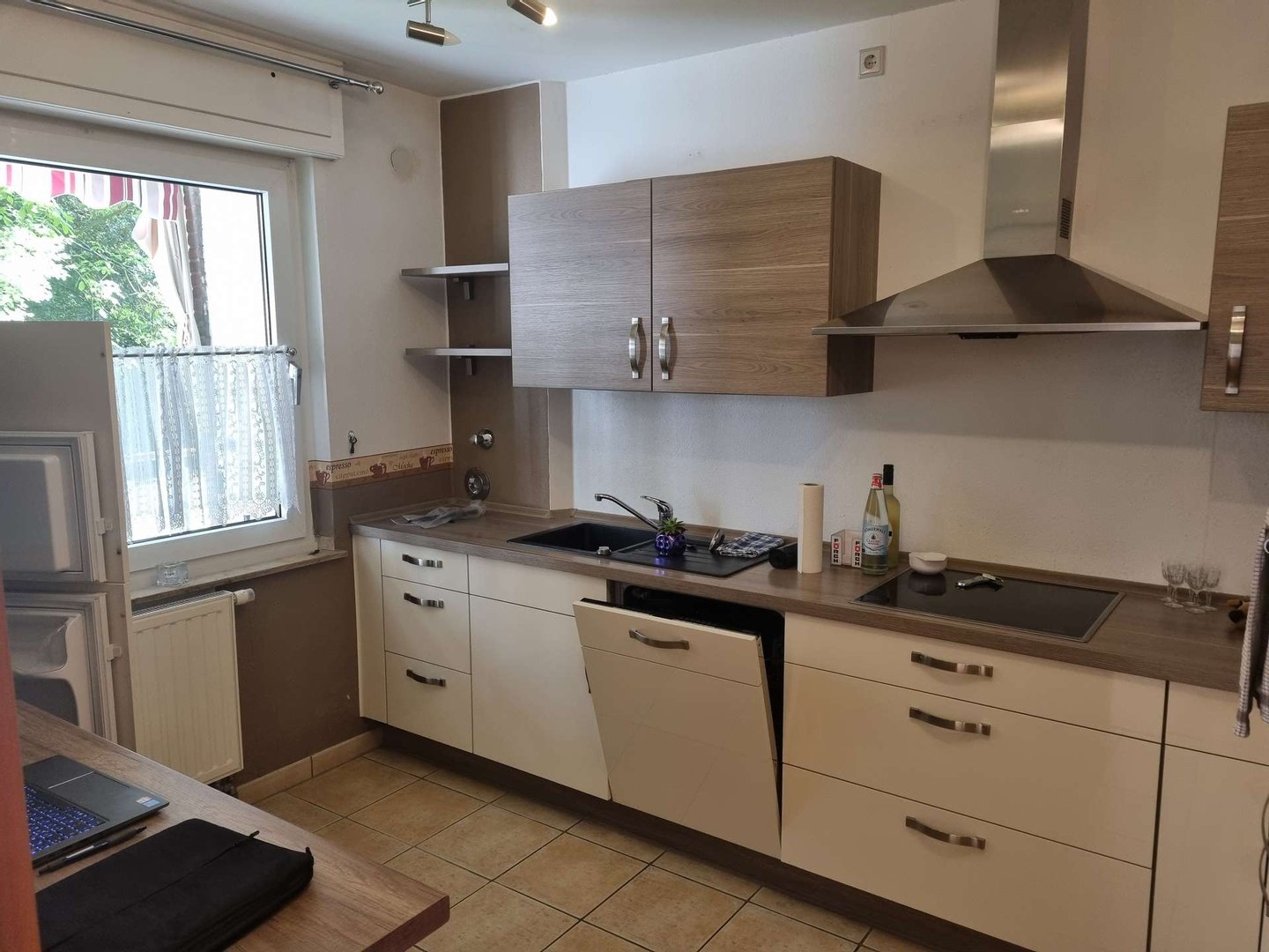 Die Küche ist mit einem Fenster (ebenfalls mit elektrischen Rollläden) zum Garten, einer gepflegten Einbauküche (inkl. neuer Siemens-Spülmaschine) sowie einem angrenzenden, praktischen großen Abstellraum mit moderner Gastherme ausgestattet.