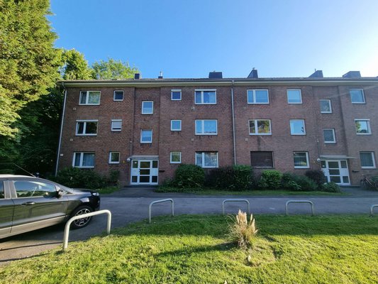 Diese charmante, modernisierte Erdgeschosswohnung befindet sich in einem gepflegten, dreigeschossigen Mehrfamilienhaus mit klassischer Backstein-Verklinkerung und Satteldach. Die Wohnung liegt am Ende des Gebäudes – von der Engelbertstraße aus nicht einsehbar – und bietet dadurch eine ruhige Wohnlage mit herrlichem Blick ins Grüne auf beiden Seiten.