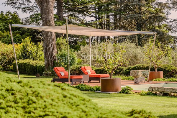 Die Innenräume sind mit großer Sorgfalt gestaltet und spiegeln einen raffinierten, anspruchsvollen Stil wider, bereichert durch zahlreiche künstlerische Elemente. Im Erdgeschoss runden ein einladender Pool sowie ein elegantes Poolhaus dieses Refugium vollkommener Ruhe und absoluter Privatsphäre ab.