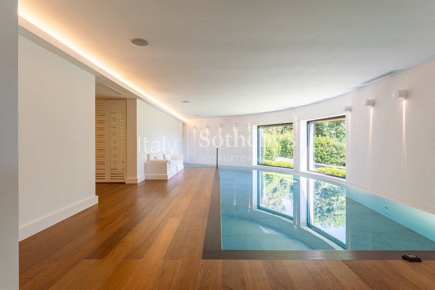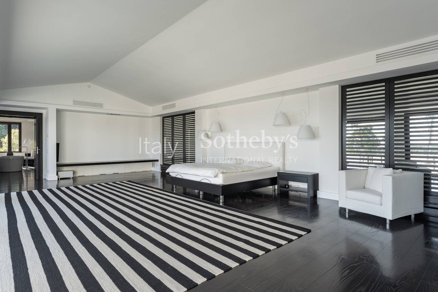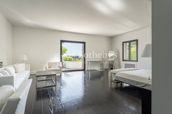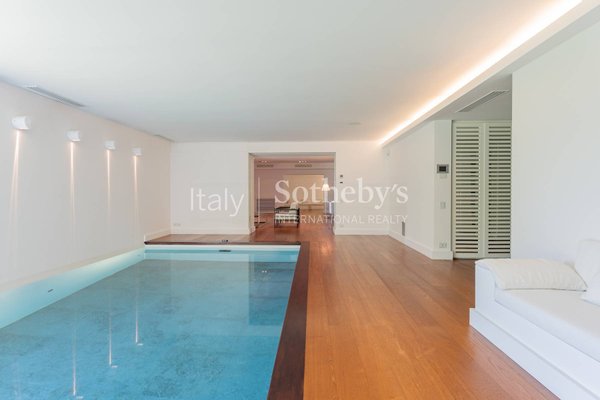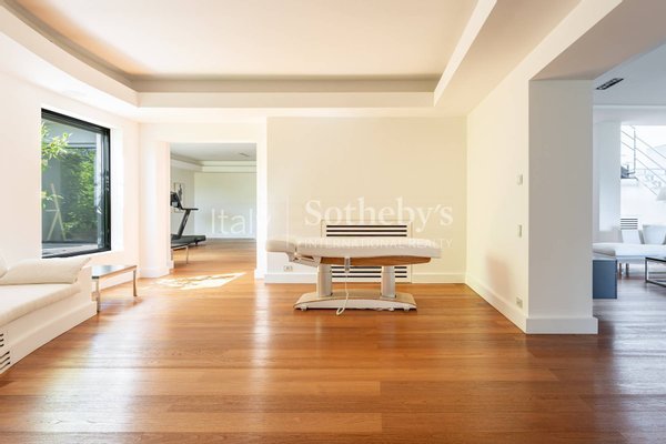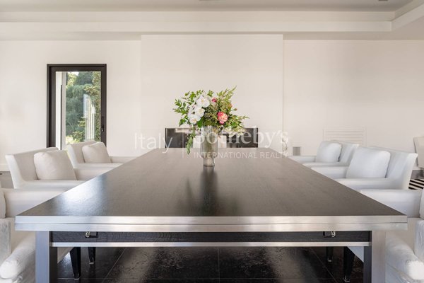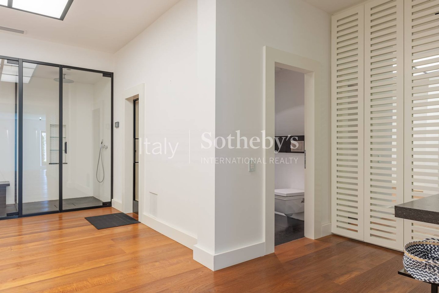 Große und helle Zimmer mit hochwertigen Materialien und tadellosem Stil, das Ergebnis einer raffinierten Innenarchitekturarbeit. Die Villa besteht aus drei großen Sälen, von denen sich zwei symmetrisch zu den beiden Seiten der Haupthalle des majestätischen Eingangs öffnen; drei großzügige Doppelzimmer mit en-suite Badezimmern sowie eine Master-Suite mit eigenem Arbeitszimmer, großem Badezimmer und 2 Schränken; eine große professionelle Küche, private Lounges, ein Hallenbad, ein Fitness- und Entspannungsbereich, ein Weinkeller und zwei interne Aufzüge. Die Tiefgaragen erstrecken sich über 300 Quadratmeter und bieten Platz für 8 Autos und ein gepanzertes Gewölbe. Es gibt auch einen Grillplatz an der Küche auf einer separaten Terrasse mit Essbereich im Freien, verschiedene Solarien und luxuriöse Gästebäder sowie einen Wasch- und Bügelraum im Erdgeschoss.