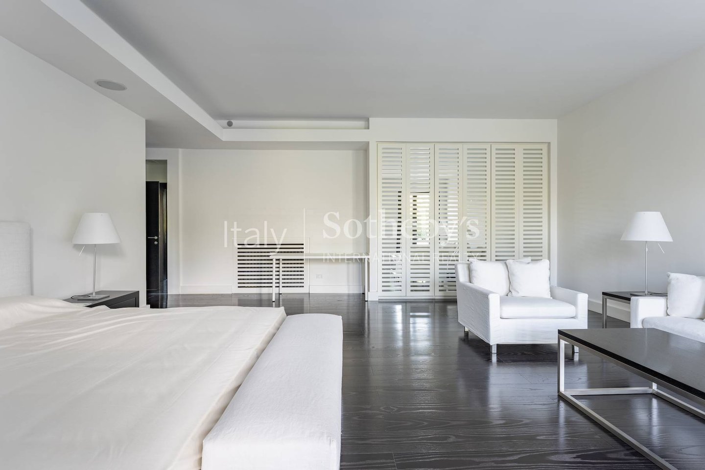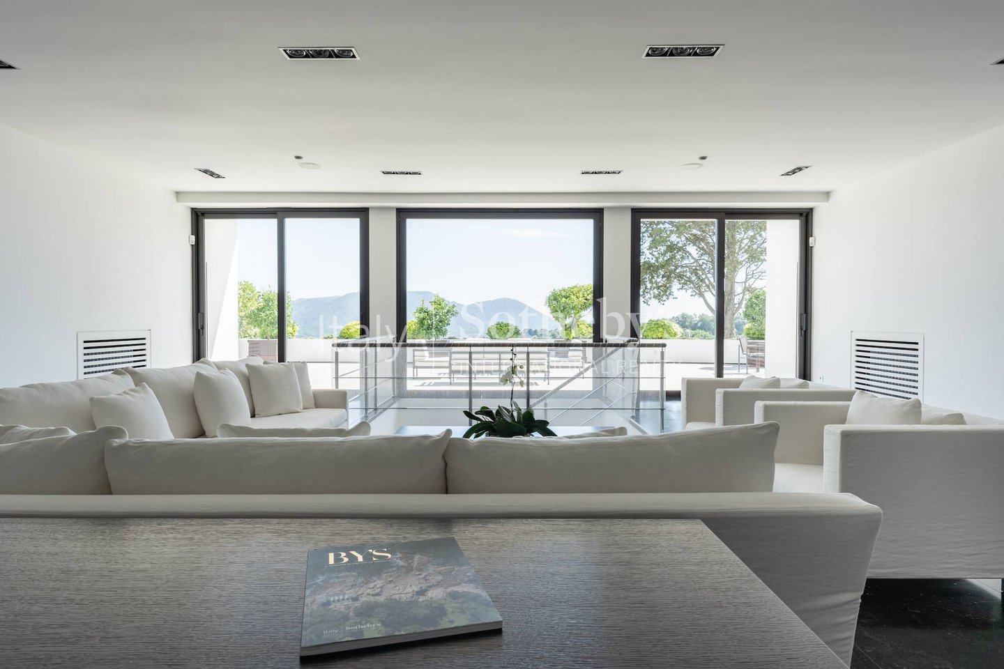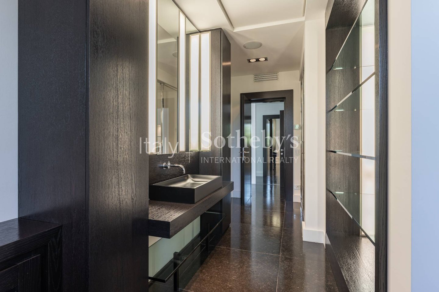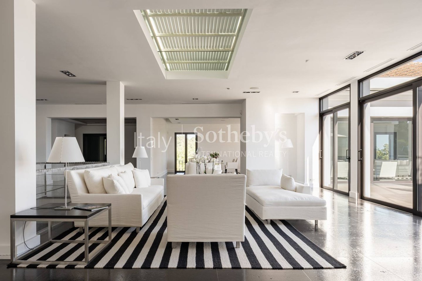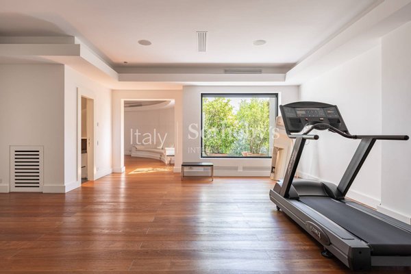 Große und helle Zimmer mit hochwertigen Materialien und tadellosem Stil, das Ergebnis einer raffinierten Innenarchitekturarbeit. Die Villa besteht aus drei großen Sälen, von denen sich zwei symmetrisch zu den beiden Seiten der Haupthalle des majestätischen Eingangs öffnen; drei großzügige Doppelzimmer mit en-suite Badezimmern sowie eine Master-Suite mit eigenem Arbeitszimmer, großem Badezimmer und 2 Schränken; eine große professionelle Küche, private Lounges, ein Hallenbad, ein Fitness- und Entspannungsbereich, ein Weinkeller und zwei interne Aufzüge. Die Tiefgaragen erstrecken sich über 300 Quadratmeter und bieten Platz für 8 Autos und ein gepanzertes Gewölbe. Es gibt auch einen Grillplatz an der Küche auf einer separaten Terrasse mit Essbereich im Freien, verschiedene Solarien und luxuriöse Gästebäder sowie einen Wasch- und Bügelraum im Erdgeschoss.