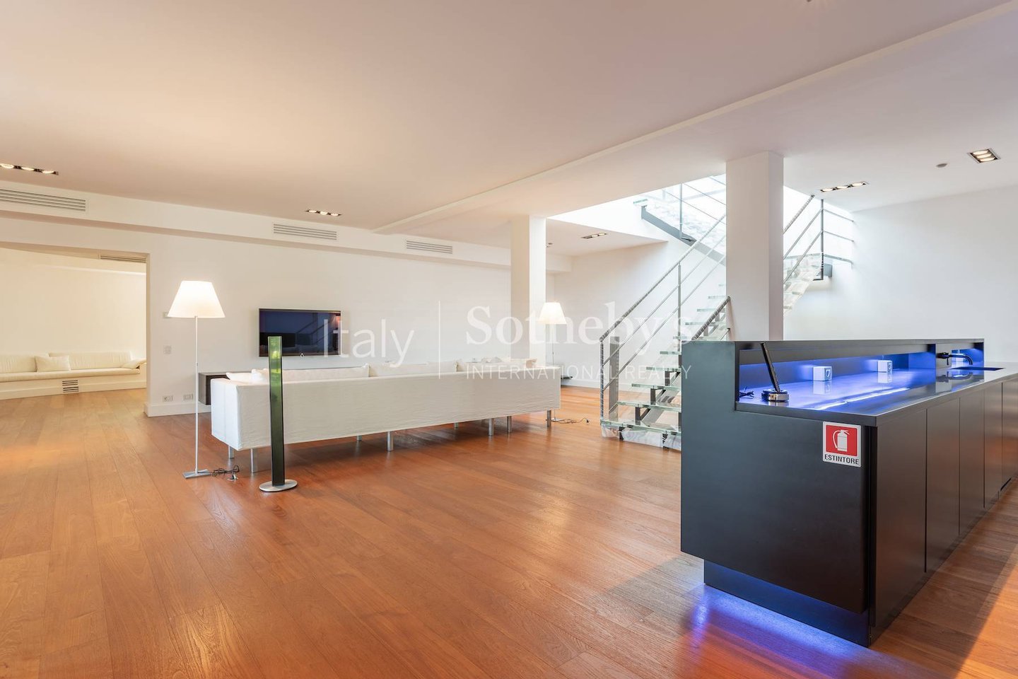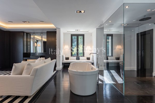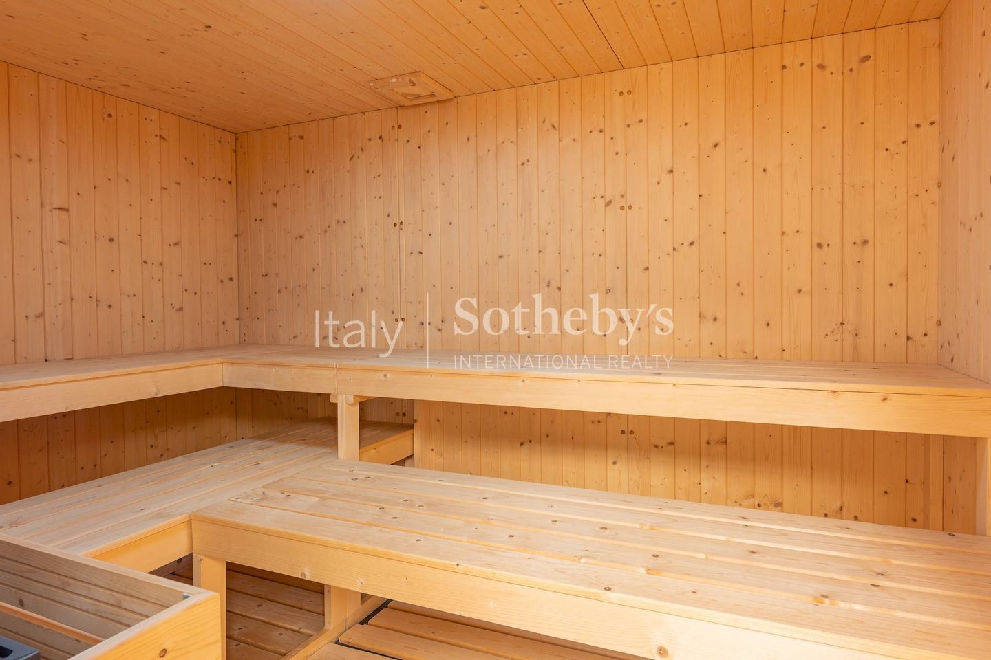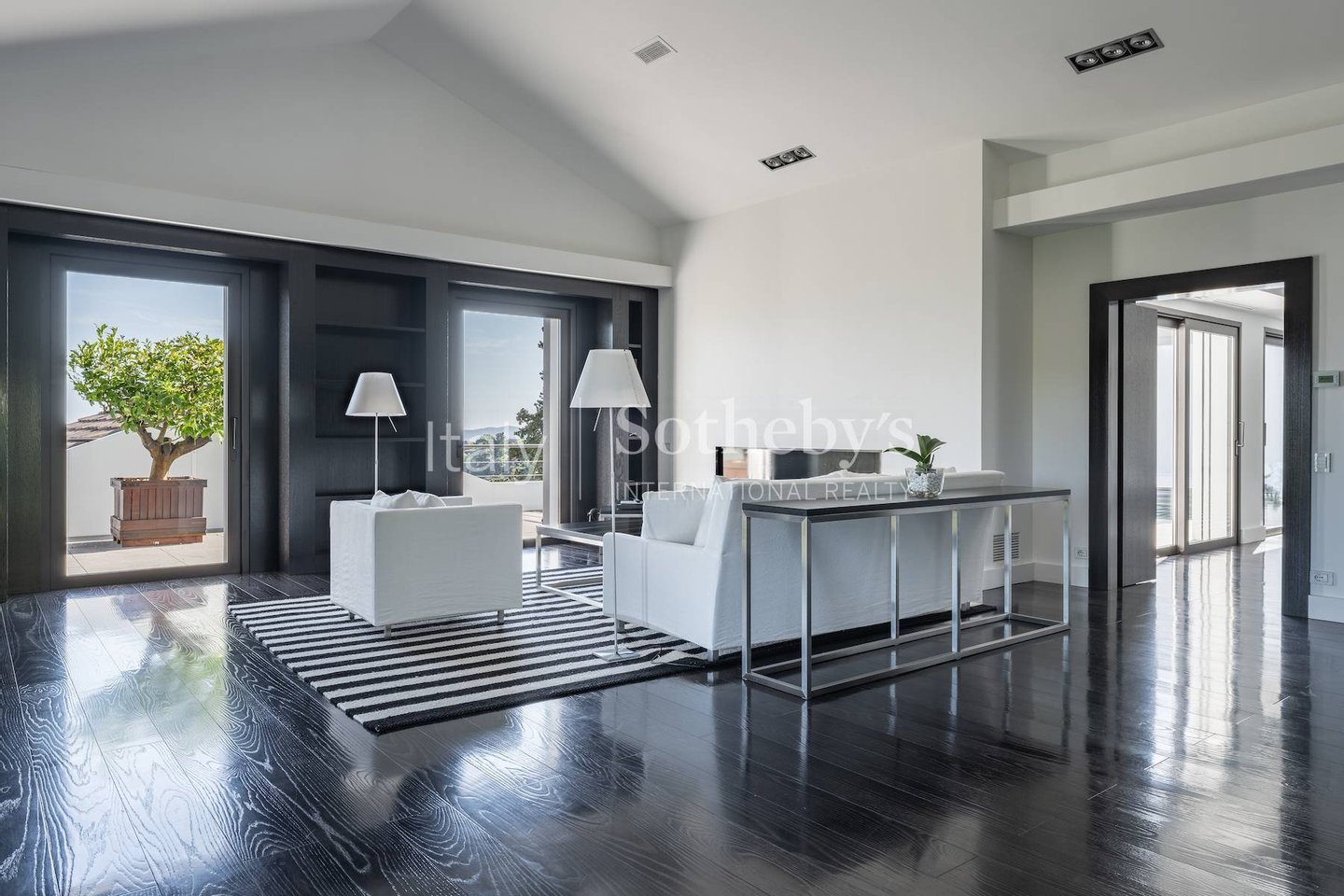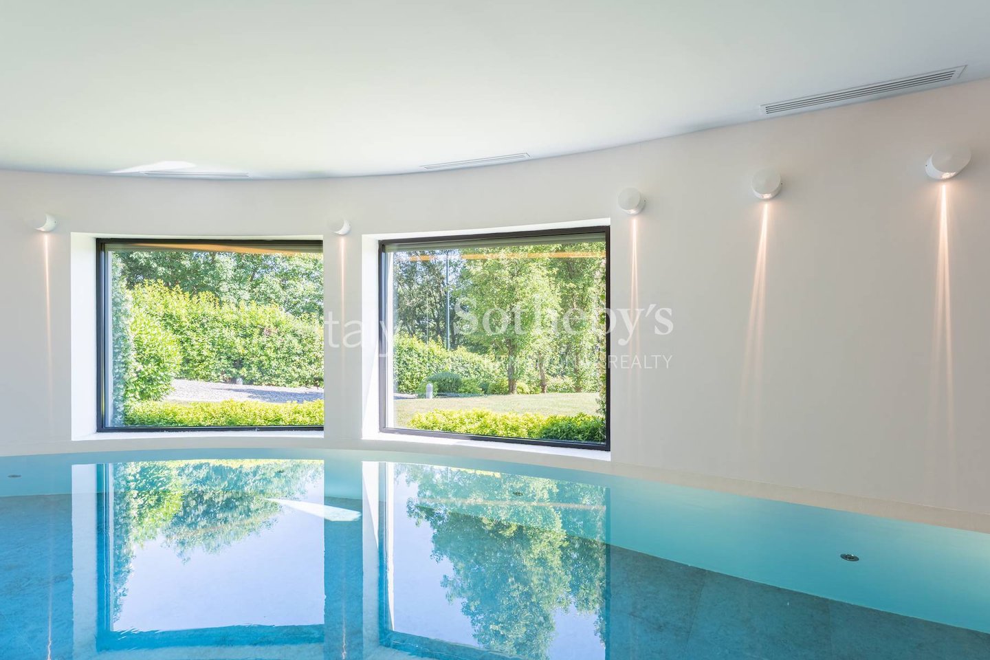 Große und helle Zimmer mit hochwertigen Materialien und tadellosem Stil, das Ergebnis einer raffinierten Innenarchitekturarbeit. Die Villa besteht aus drei großen Sälen, von denen sich zwei symmetrisch zu den beiden Seiten der Haupthalle des majestätischen Eingangs öffnen; drei großzügige Doppelzimmer mit en-suite Badezimmern sowie eine Master-Suite mit eigenem Arbeitszimmer, großem Badezimmer und 2 Schränken; eine große professionelle Küche, private Lounges, ein Hallenbad, ein Fitness- und Entspannungsbereich, ein Weinkeller und zwei interne Aufzüge. Die Tiefgaragen erstrecken sich über 300 Quadratmeter und bieten Platz für 8 Autos und ein gepanzertes Gewölbe. Es gibt auch einen Grillplatz an der Küche auf einer separaten Terrasse mit Essbereich im Freien, verschiedene Solarien und luxuriöse Gästebäder sowie einen Wasch- und Bügelraum im Erdgeschoss.