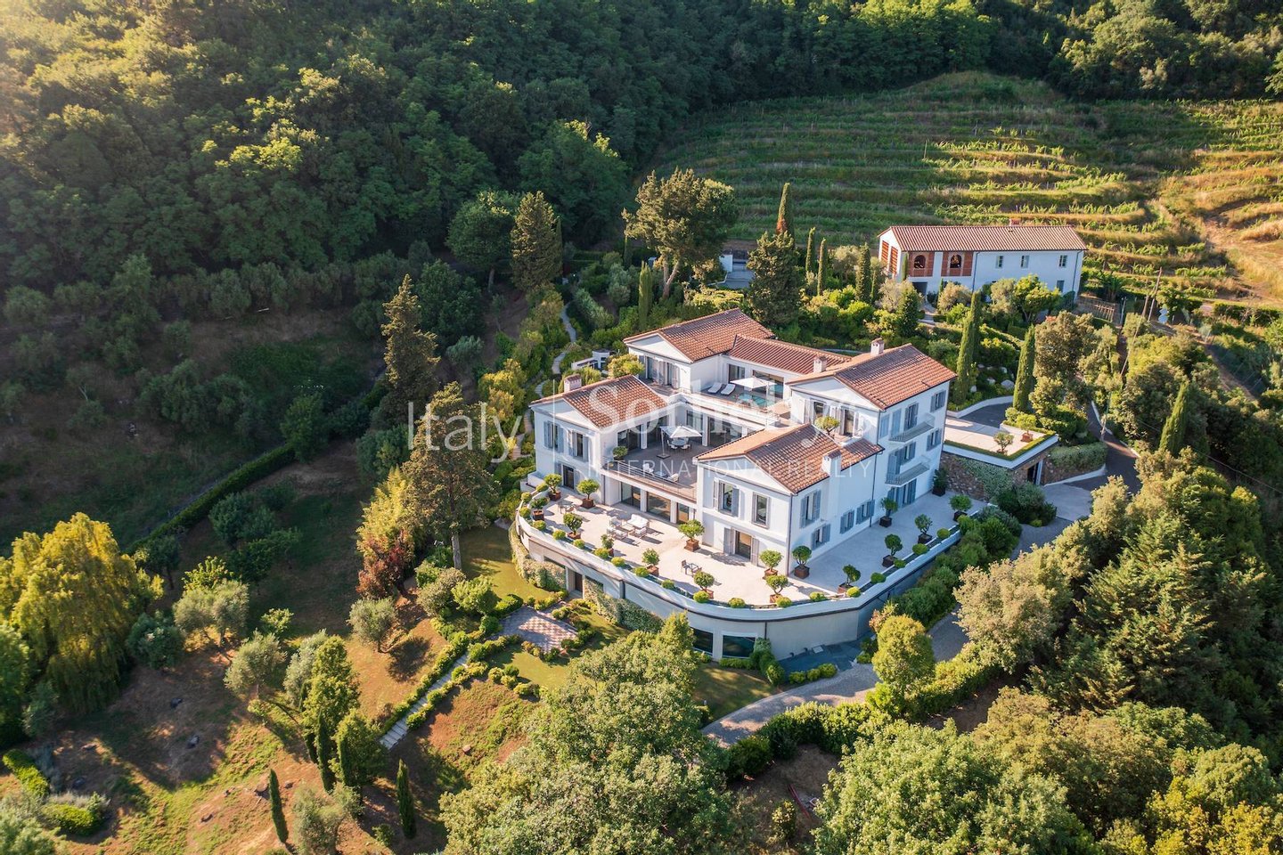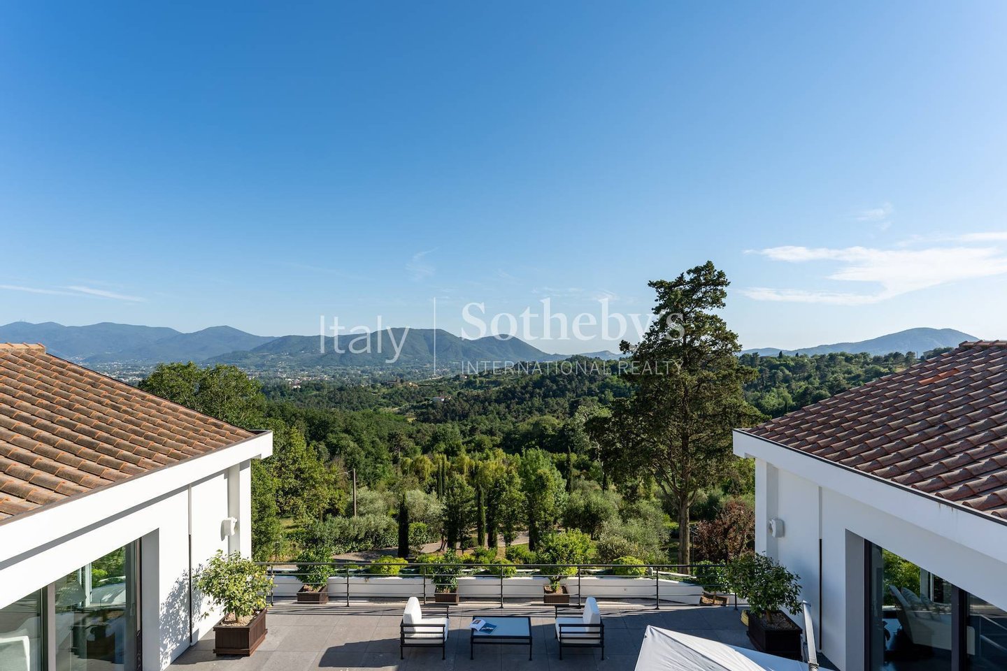 Außergewöhnliche und einzigartige Design-Villa auf den wunderschönen Hügeln von Lucca, es ist zweifellos eines der elegantesten und raffiniertesten Anwesen im modernen Stil in der Toskana.