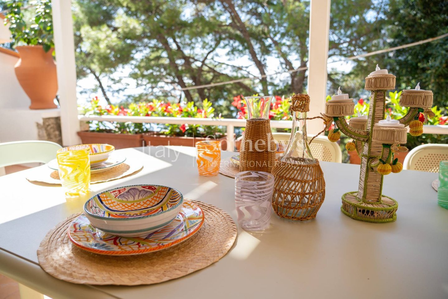 Ein seltenes Highlight ist der Zugang zum Strand im malerischen Gebiet der Torre Saracena. Abgerundet wird die Immobilie durch einen praktischen Parkplatz, ein wertvolles Merkmal an einem der begehrtesten Orte der Insel.