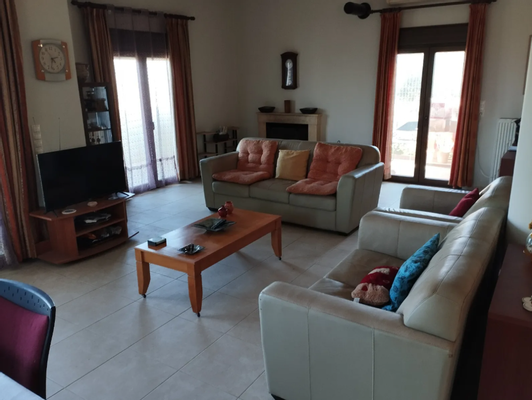 Heraklion, Kreta, Vasilies: Zu verkaufen: Einfamilienhaus (145 m²), Luxus, Baujahr 2004. Es besteht aus 3 Schlafzimmern, 1 Küche, 1 Wohnzimmer, Bad, 1 WC, Abstellraum, Balkon und Garten. Es bietet eine schöne Aussicht, Aluminiumfenster, Fliesenböden, Doppelverglasung, Kamin, 2 Parkplätze, autonome Gasheizung. Das Grundstück ist 515 m² groß, die verbleibende Baufläche beträgt 100 m².
