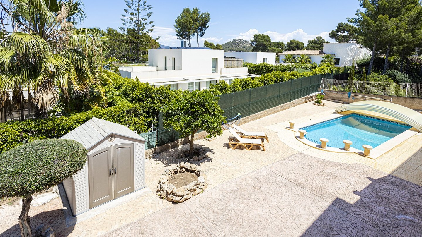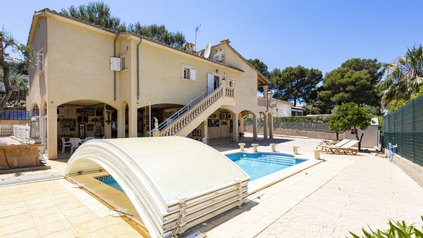 Willkommen in Ihrem neuen Zuhause! Diese mediterrane Villa mit großen Gestaltungsmöglichkeiten in Santa Ponsa , aufgeteilt auf 2 Etagen , erstreckt sich über ein Grundstück von ca. 872 m2, wovon die bebaute Fläche ca. 244m2 und die reine Wohnfläche ca. 133 m2 beträgt.