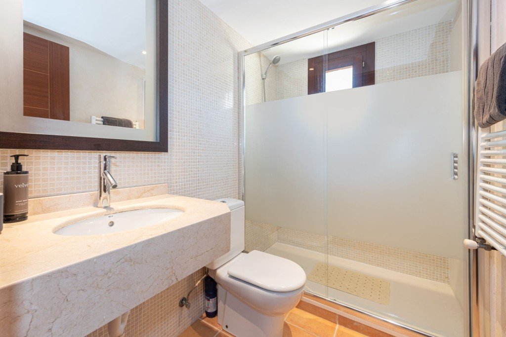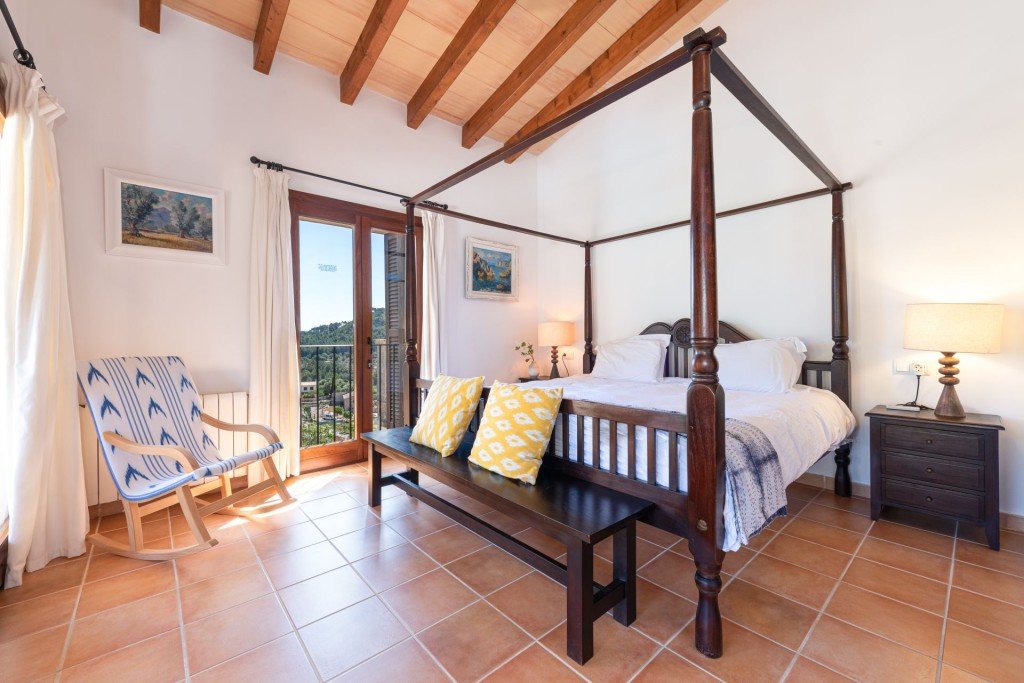 Im Obergeschoss befinden sich drei weitere Doppelschlafzimmer mit viel Tageslicht und herrlichem Ausblick. Zwei dieser Schlafzimmer verfügen über Zugang zu privaten Terrassen. Eine Treppe führt von dieser Etage zur Dachterrasse, der perfekte Ort, um den Panoramablick über die umliegenden Berge und das Dorf zu genießen.