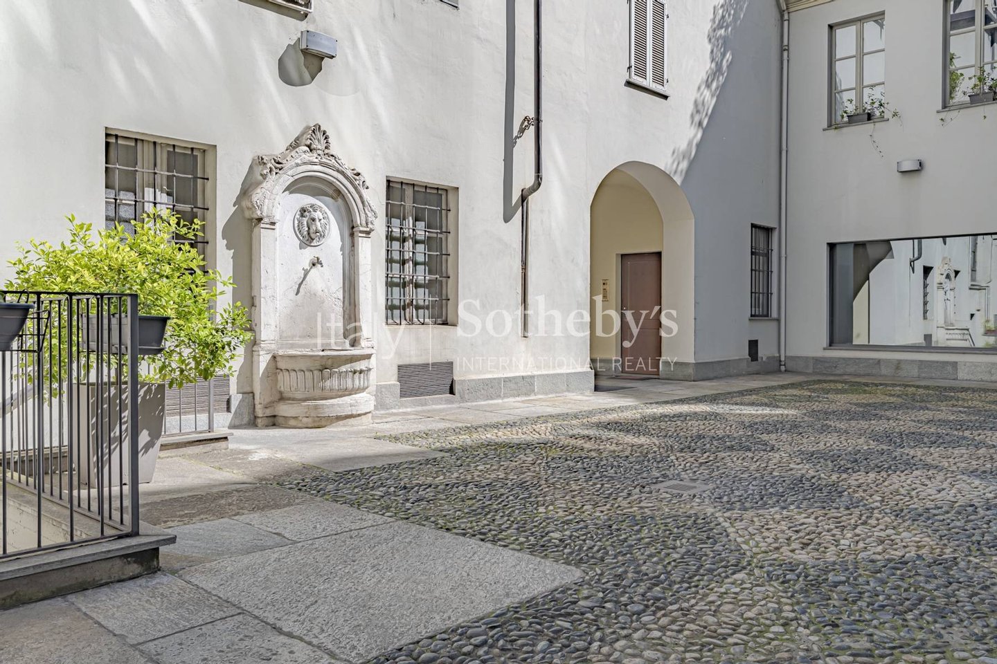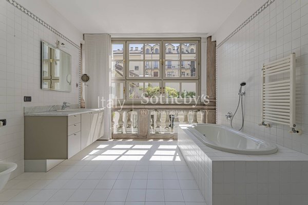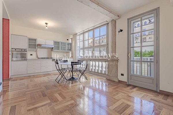 Die Wohnung liegt im sogenannten Piano Nobile (repräsentativer Hauptgeschoss) und besticht durch ihre herausragende Lage mit Blick auf den Platz sowie durch ihren hohen architektonischen Wert, der durch wertvolle originale Elemente unterstrichen wird, welche den historischen Charme hervorheben. Eine sorgfältige Restaurierung hat Respekt vor der Geschichte mit zeitgemäßem Design verbunden: Die Räume wurden im offenen Stil neu gestaltet, während der herrliche, aus dem 18. Jahrhundert stammende repräsentative Saal vollständig erhalten blieb.