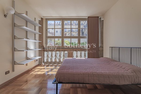 Die Wohnung liegt im sogenannten Piano Nobile (repräsentativer Hauptgeschoss) und besticht durch ihre herausragende Lage mit Blick auf den Platz sowie durch ihren hohen architektonischen Wert, der durch wertvolle originale Elemente unterstrichen wird, welche den historischen Charme hervorheben. Eine sorgfältige Restaurierung hat Respekt vor der Geschichte mit zeitgemäßem Design verbunden: Die Räume wurden im offenen Stil neu gestaltet, während der herrliche, aus dem 18. Jahrhundert stammende repräsentative Saal vollständig erhalten blieb.