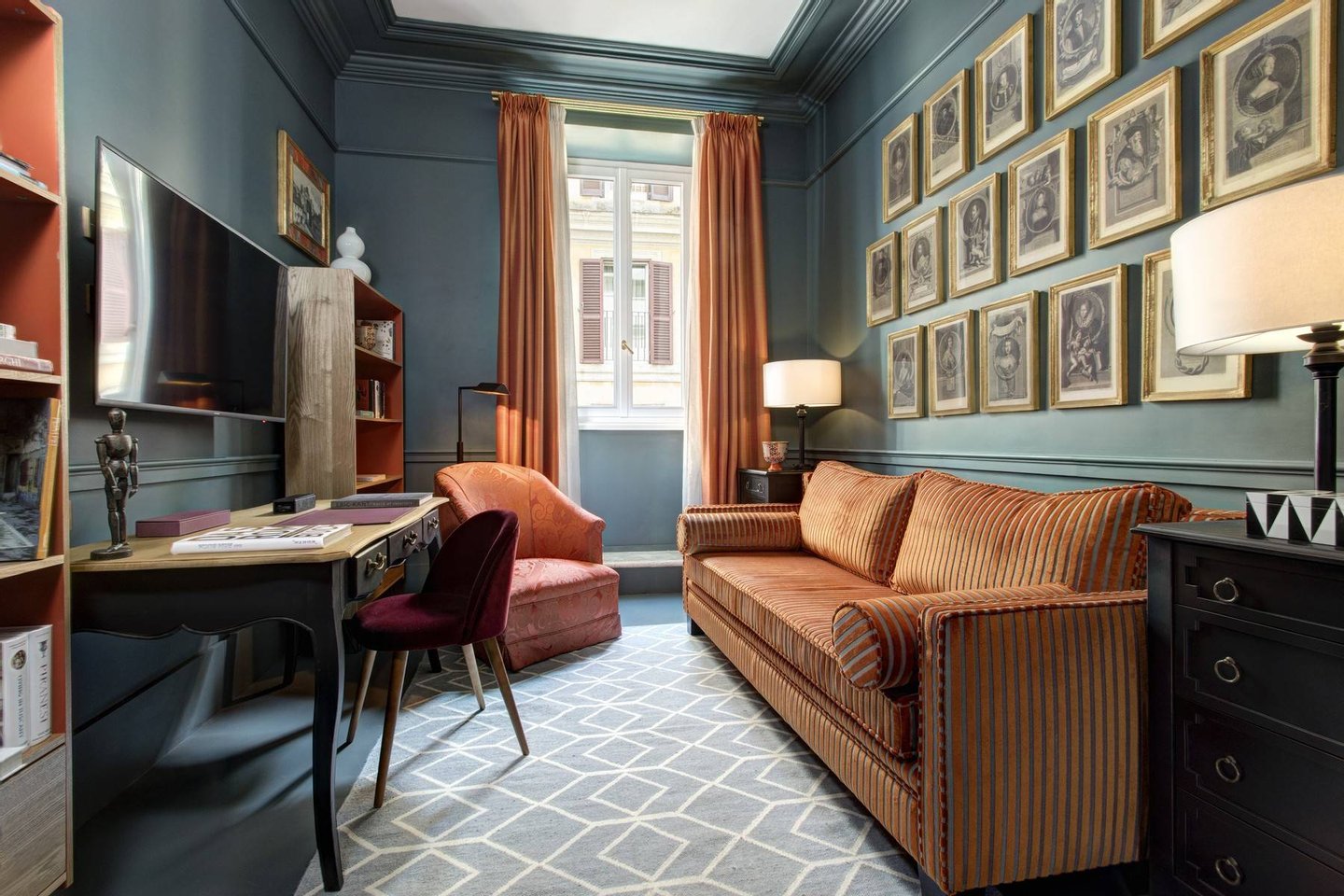 At Piazza de Spagna, five palatial private apartments within an 18th-century palazzo. Above, a stately roof terrace surveying the Spanish Steps.