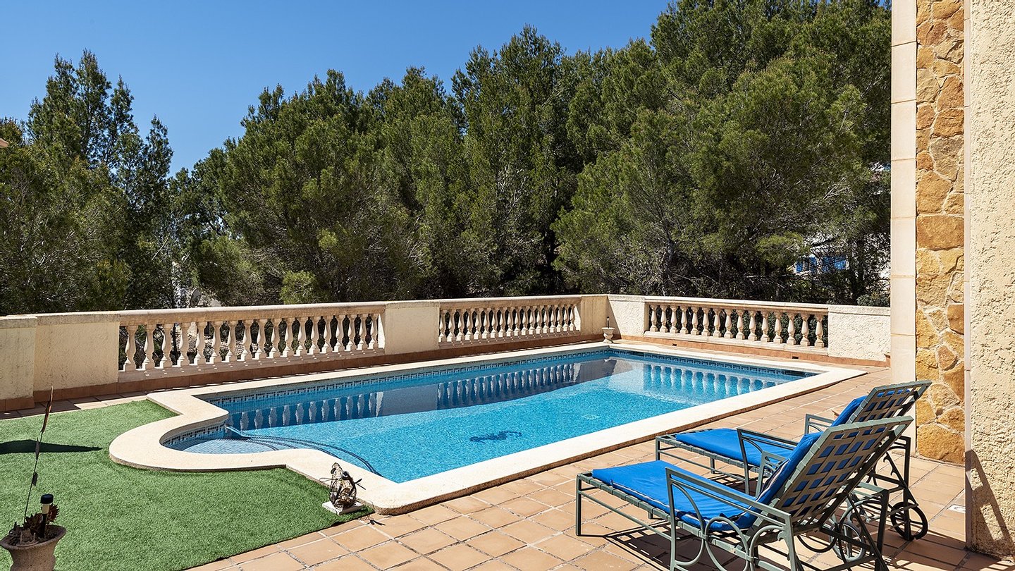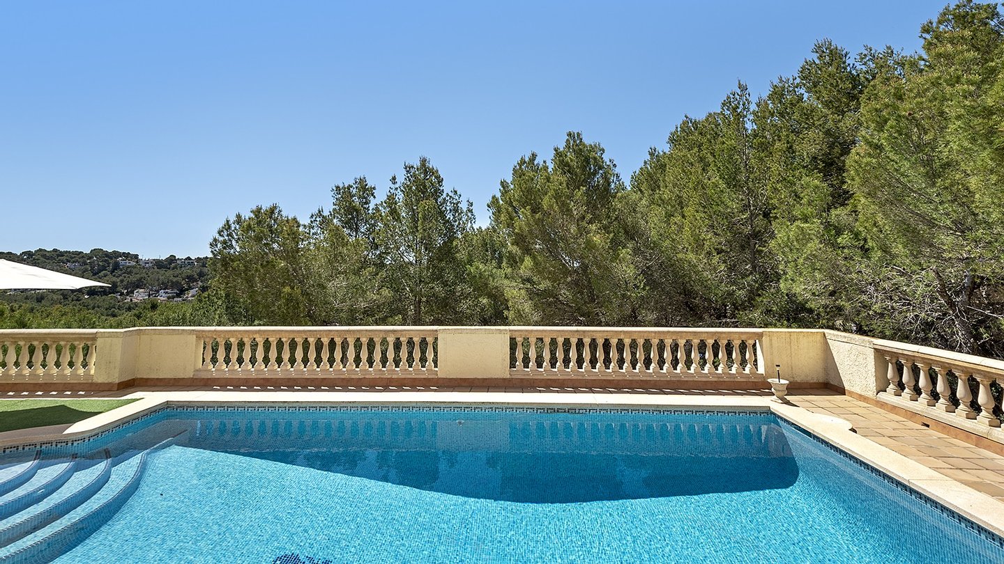 Das 1.025 m² große Grundstück garantiert exklusive Privatsphäre und viel Raum zum Entspannen. Die großzügige Wohnfläche von 225 m² bietet ausreichend Platz für eine große Familie oder Gäste. Die Villa bietet insgesamt 5 Schlafzimmer, 4 stilvolle Bäder, 3 davon en suite.Für ganzjährig angenehme Temperaturen in den Räumlichkeiten sorgen eine Klimaanlage (w/k) eine Gaszentralheizung und ein offener Kamin, welcher zudem noch als stilvolles Designelement dient. Stauraum ist dank eines Abstellraums, Hauswirtschaftsraum, Einbauschränken und einem 20m2 Keller reichlich vorhanden. Besonders hervorzuheben ist der einladende 45 m² große Pool, der an heißen Sommertagen für angenehme Abkühlung sorgt und ideale Bedingungen für entspannte Stunden im Freien bietet. Auch für Ihre Fahrzeuge ist ausreichend Platz vorhanden: Im überdachten Carport finden 2 Autos Platz, weitere 3 Fahrzeuge können bequem auf der Freifläche geparkt werden. Diese außergewöhnliche Immobilie vereint Ruhe, Natur und Lifestyle in einer der begehrtesten Regionen Mallorcas.
