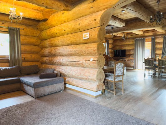 Das Douglasie-Stammholzhaus besticht durch eine durchdachte und hochwertige Ausstattung, die rustikalen Charme mit modernem Komfort perfekt verbindet. Die Innenräume verteilen sich auf drei Etagen und bieten ca. 220 m² Wohnfläche, die individuell genutzt und gestaltet werden können. Die großzügigen, lichtdurchfluteten Räume strahlen eine warme, natürliche Atmosphäre aus, die durch die hochwertigen Holzelemente und die behutsame Planung noch verstärkt wird.