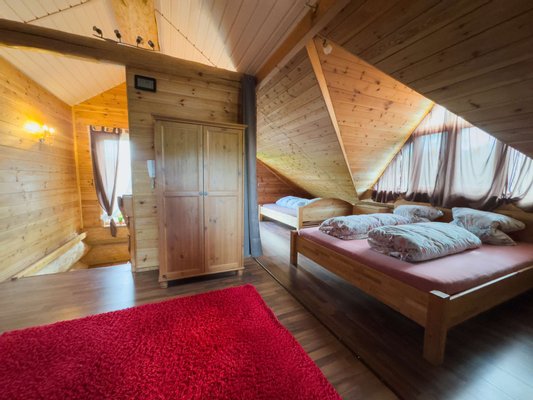 • Authentischer Douglasien-Stammholzbau auf drei Stockwerken