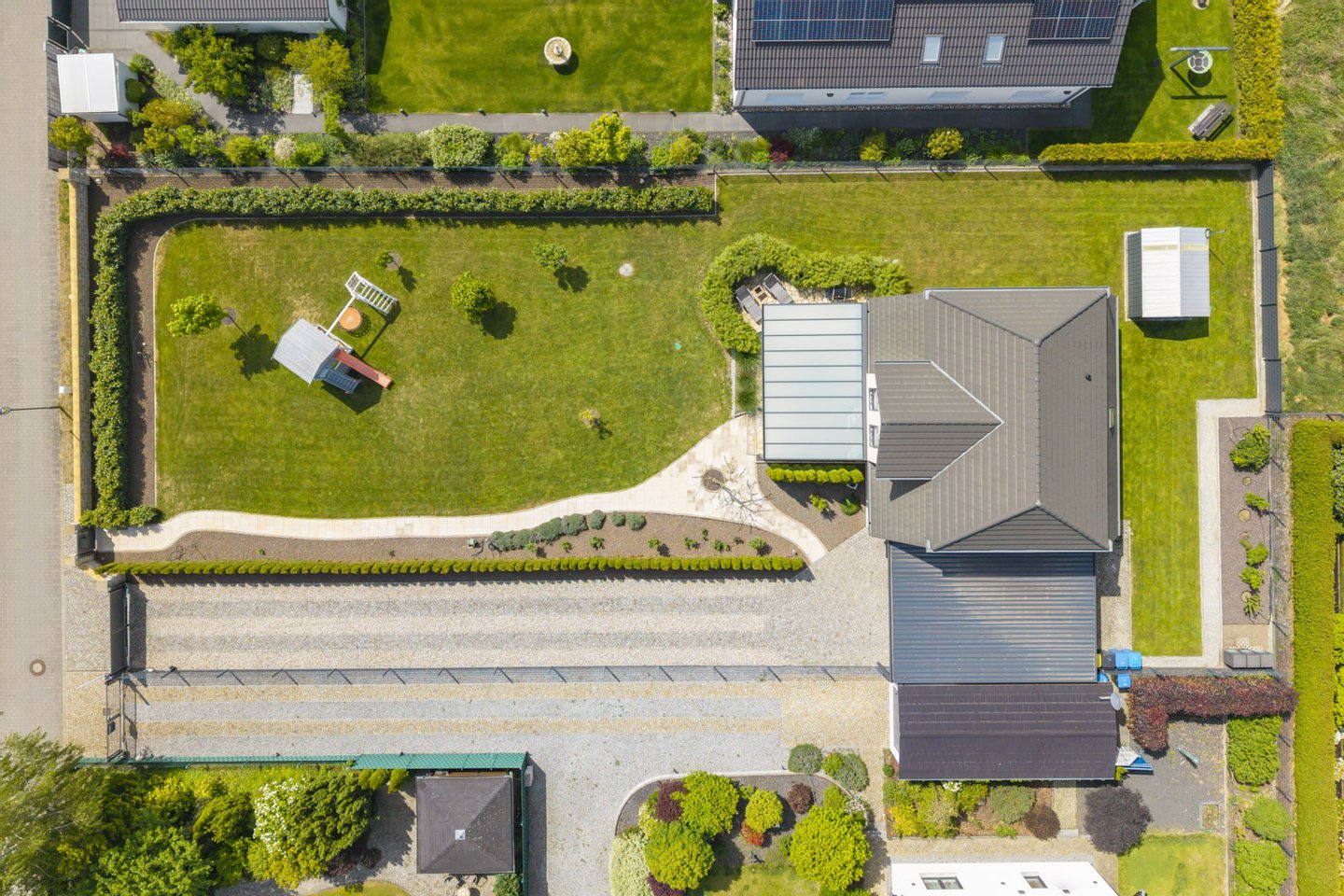 Die stilvollen Außenanlagen unterstreichen den besonderen Charakter dieser Immobilie. Eine großzügige, überdachte Natursteinterrasse mit elektrischer Markise lädt zu entspannten Stunden im Freien ein. Wege und Pflasterungen aus Naturstein und Granit sind nicht nur ein optisches Highlight, sondern auch robust und langlebig. Ein Brunnen samt Bewässerungssystem versorgt die hochwertigen Anpflanzungen im Garten. Ein Gartenhaus bietet zusätzlichen Stauraum, z.B. für Fahrräder oder kann individuell genutzt werden.