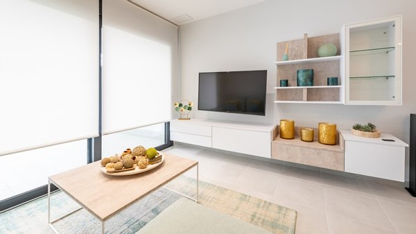 Jede Wohnung wird mit einer voll ausgestatteten Küche, einer kanalisierten aerothermischen Klimaanlage, einer elektrischen Fußbodenheizung in beiden Badezimmern und einem eingebauten Spülkastensystem übergeben.