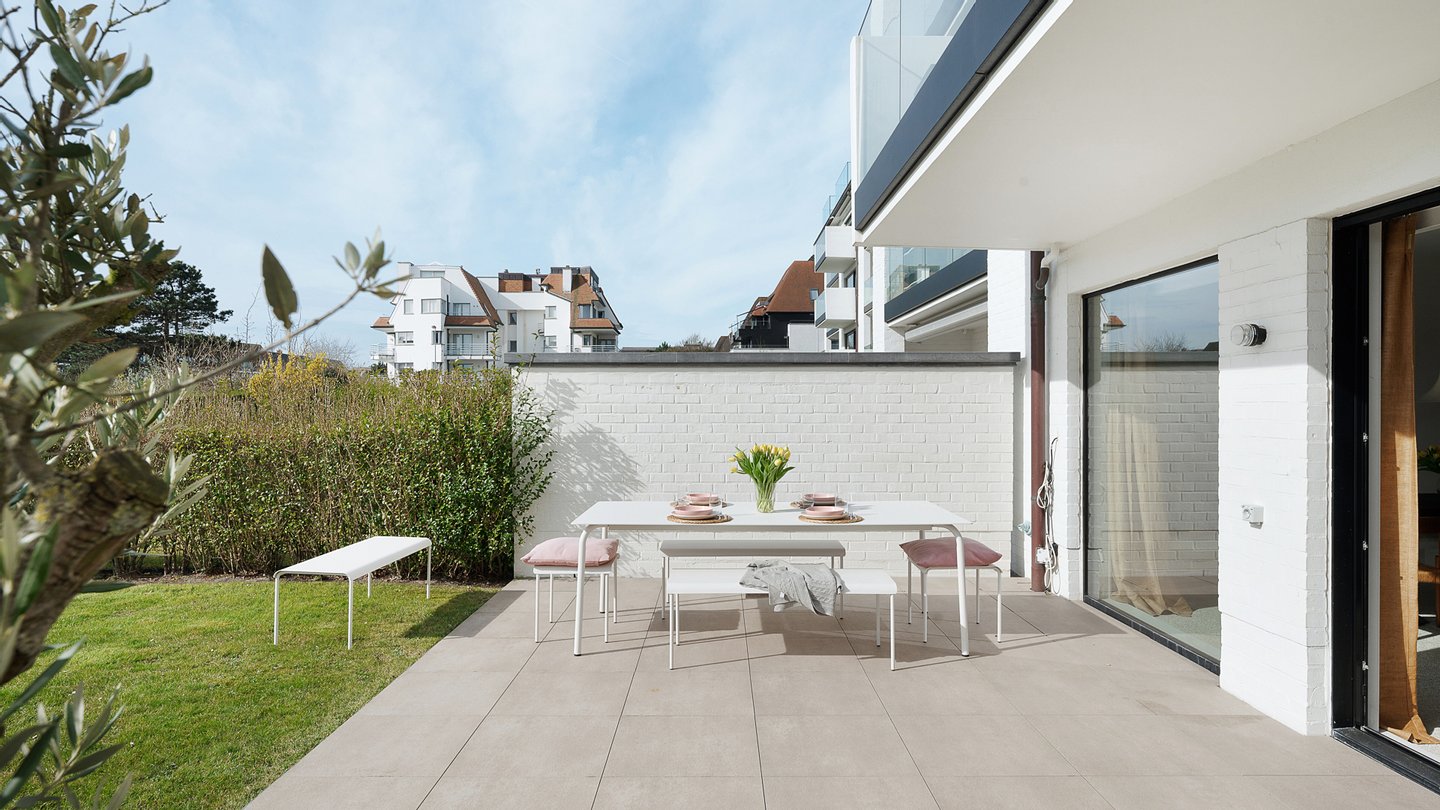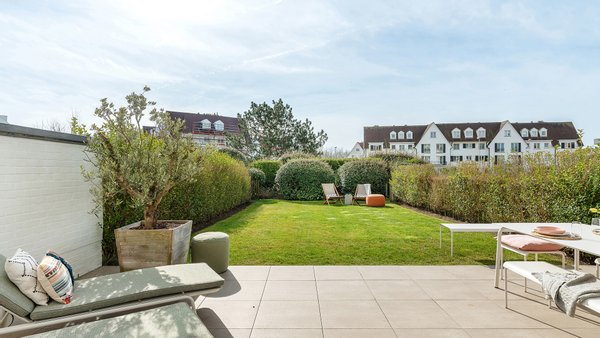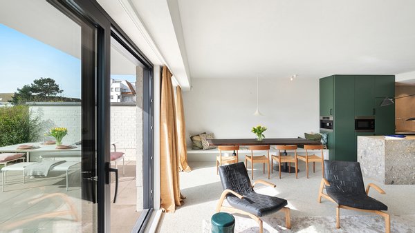 Dies ist eine jener seltenen Perlen an der Knokker Strandpromenade, mit einer einzigartigen Ausstrahlung und Stil. Dieses prächtige Duplex-Apartment in der Residenz Lekkerbek bietet eine außergewöhnliche Wohnfläche und umfasst vier große Schlafzimmer, jedes mit einem eigenen en-suite Duschbad. Drei Schlafzimmer befinden sich auf der Ebene der Strandpromenade, zwei davon mit Zugang zu einer großzügigen, südlich ausgerichteten Terrasse. Eine beeindruckende Holztreppe, die an ein Gemälde von Mondrian erinnert, führt ins Gartengeschoss. Auf der Gartenebene erwartet Sie ein lichtdurchfluteter Wohnbereich mit offener Küche, technische Räumlichkeiten sowie ein viertes Schlafzimmer mit Duschbad. Eine große Schiebetür öffnet sich zu einer weitläufigen Terrasse, perfekt, um die Sonne zu genießen und in absoluter Privatsphäre zu speisen. Zudem gibt es einen privaten Garten, einen großen Keller sowie die Möglichkeit, zwei großzügige Parkplätze im Gebäude zu erwerben. Concierge vor Ort. Dieses Apartment ist in jeder Hinsicht außergewöhnlich: seine erstklassige Lage, die großzügige Lichtdurchflutung, die warmen und überraschenden Farbakzente des Interieurs, die optimale Sonneneinstrahlung, die großen Terrassen und der Garten machen es zu einer einzigartigen Immobilie auf dem Markt.