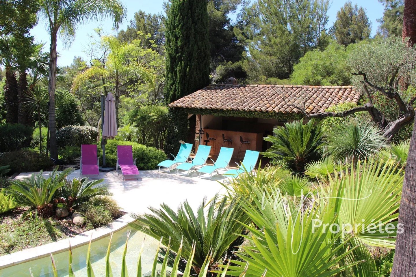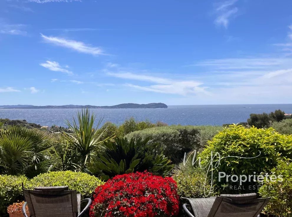 Mit Panoramablick auf die Halbinseln Giens und Porquerolles umfasst dieses Friedensparadies eine 215 m² große zweistöckige Hauptvilla mit eigenem Studio, ein Haus im Erdgeschoss, einen beheizten Infinity-Pool, ein Poolhaus, einen Jacuzzi im Innen- und Außenbereich sowie eine geräumige Garage.