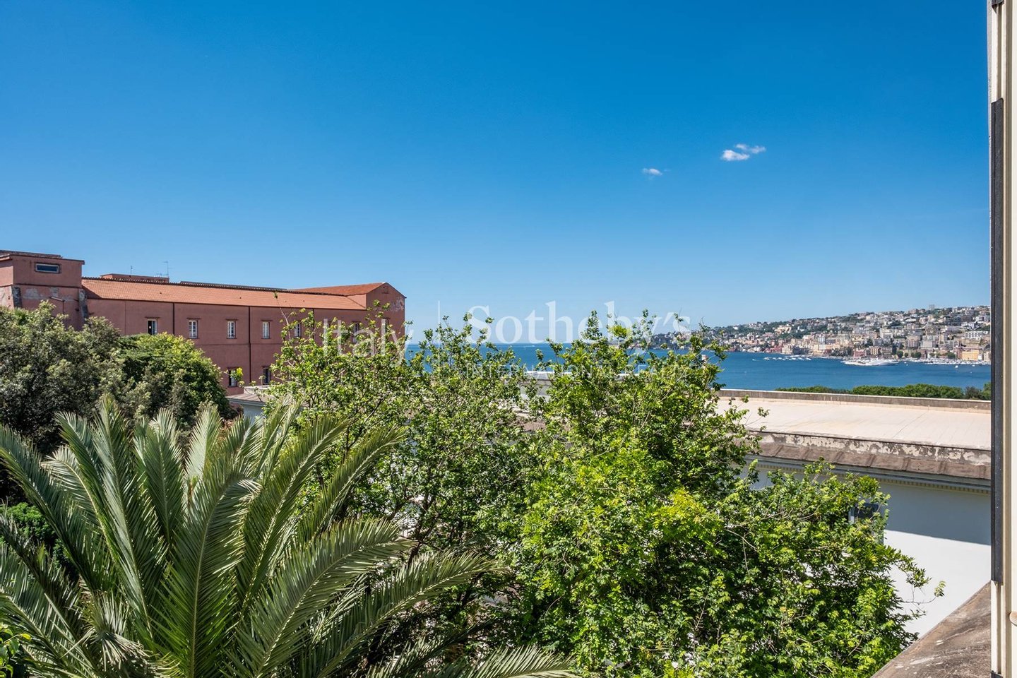Die Immobilie besticht durch ihre Helligkeit und die reizvollen Ausblicke ins Grüne und auf den Golf von Neapel. Die großzügige, lichtdurchflutete Wohnung erstreckt sich über eine weitläufige Fläche und umfasst zwei Eingänge, ein doppelseitiges Wohnzimmer, zwei Arbeitszimmer, eine halb abgetrennte Küche, eine Waschküche, zwei Bäder, einen Abstellraum und drei Schlafzimmer.