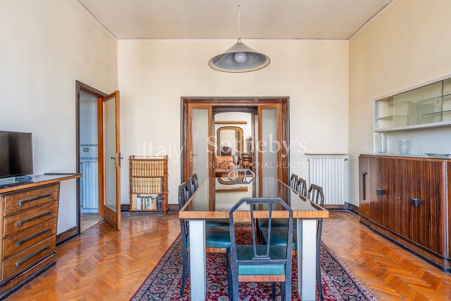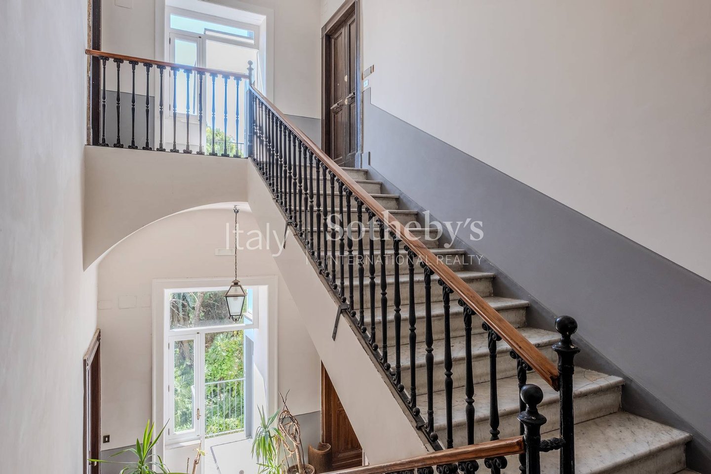 Die Immobilie besticht durch ihre Helligkeit und die reizvollen Ausblicke ins Grüne und auf den Golf von Neapel. Die großzügige, lichtdurchflutete Wohnung erstreckt sich über eine weitläufige Fläche und umfasst zwei Eingänge, ein doppelseitiges Wohnzimmer, zwei Arbeitszimmer, eine halb abgetrennte Küche, eine Waschküche, zwei Bäder, einen Abstellraum und drei Schlafzimmer.