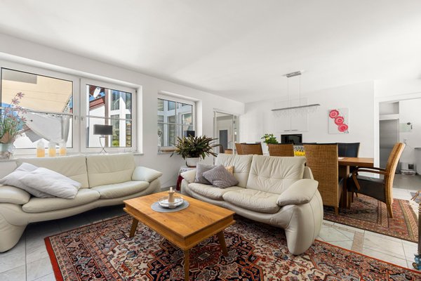 Die moderne Küche lädt zu gemeinsamen Kochabenden ein, während Sie im großzügigen Wohnbereich entspannte Stunden mit Familie und Freunden genießen.