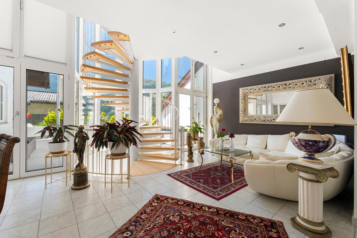 Diese außergewöhnliche Maisonette-Wohnung besticht durch ein durchdachtes Raumkonzept, eine offene Galerie und besonders durch ihren privaten Garten mit Pool und Panoramablick auf das Goldeck und einem eigenen Wellnessbereich mit Sauna im Untergeschoss - Zusammengefasst ein einzigartiger Ort, an dem man sich sofort wohlfühlt.