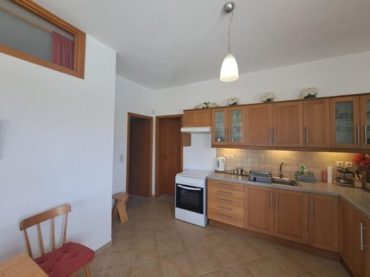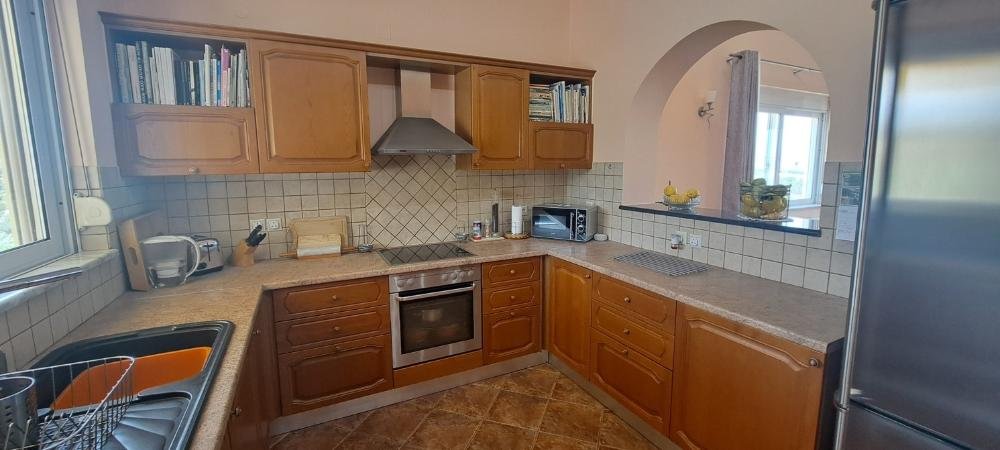 Dieses außergewöhnliche Einfamilienhaus im schönen Almyrida bietet die einmalige Gelegenheit, ein vielseitiges und gepflegtes Anwesen mit atemberaubender Aussicht und ruhiger Lage zu erwerben. Das 2004 erbaute und in ausgezeichnetem Zustand befindliche Haus erstreckt sich über insgesamt 265 m² und steht auf einem großzügigen Grundstück von 1.731 m². Die durchdachte Aufteilung in drei unabhängige Wohnungen macht es ideal für Großfamilien, Gäste oder zur Vermietung.