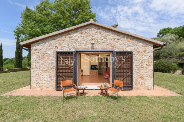 Eingebettet in eine herrliche, unberührte Landschaft, nur 1,5 km vom historischen Dorf Grutti entfernt, befindet sich dieses neu errichtete Natursteinhaus, das den Charme der umbrischen Landarchitektur mit einem komfortablen und funktionalen Wohnkonzept verbindet. In traditioneller Bauweise erbaut, erstreckt sich das Anwesen über zwei Ebenen und verfügt über ein ikonisches Türmchen mit einseitigem Pultdach und einer Panorama-Dachterrasse.