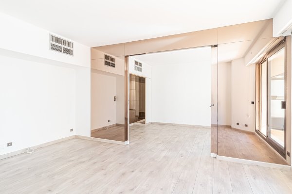 Diese begehbare Wohnung befindet sich in idealer Lage in einem Gebäude mit 24-Stunden-Sicherheitsdienst, zwischen dem Boulevard des Moulins und der Avenue Saint-Charles und nur wenige Gehminuten von den Casino-Gärten entfernt. Es besteht aus einer Eingangshalle, einem Wohnzimmer, das sich auf eine Terrasse auf der Seite des Boulevard des Moulins öffnet, einer geräumigen Küche auf der Rückseite (Seite der Avenue Saint-Charles), einem nach vorne gerichteten Schlafzimmer, das durch Schiebewände vom Wohnzimmer getrennt ist, einem Flur, der zu einem großen Schlafzimmer auf der Rückseite mit Einbauschränken führt, einem Badezimmer und einer Gästetoilette.