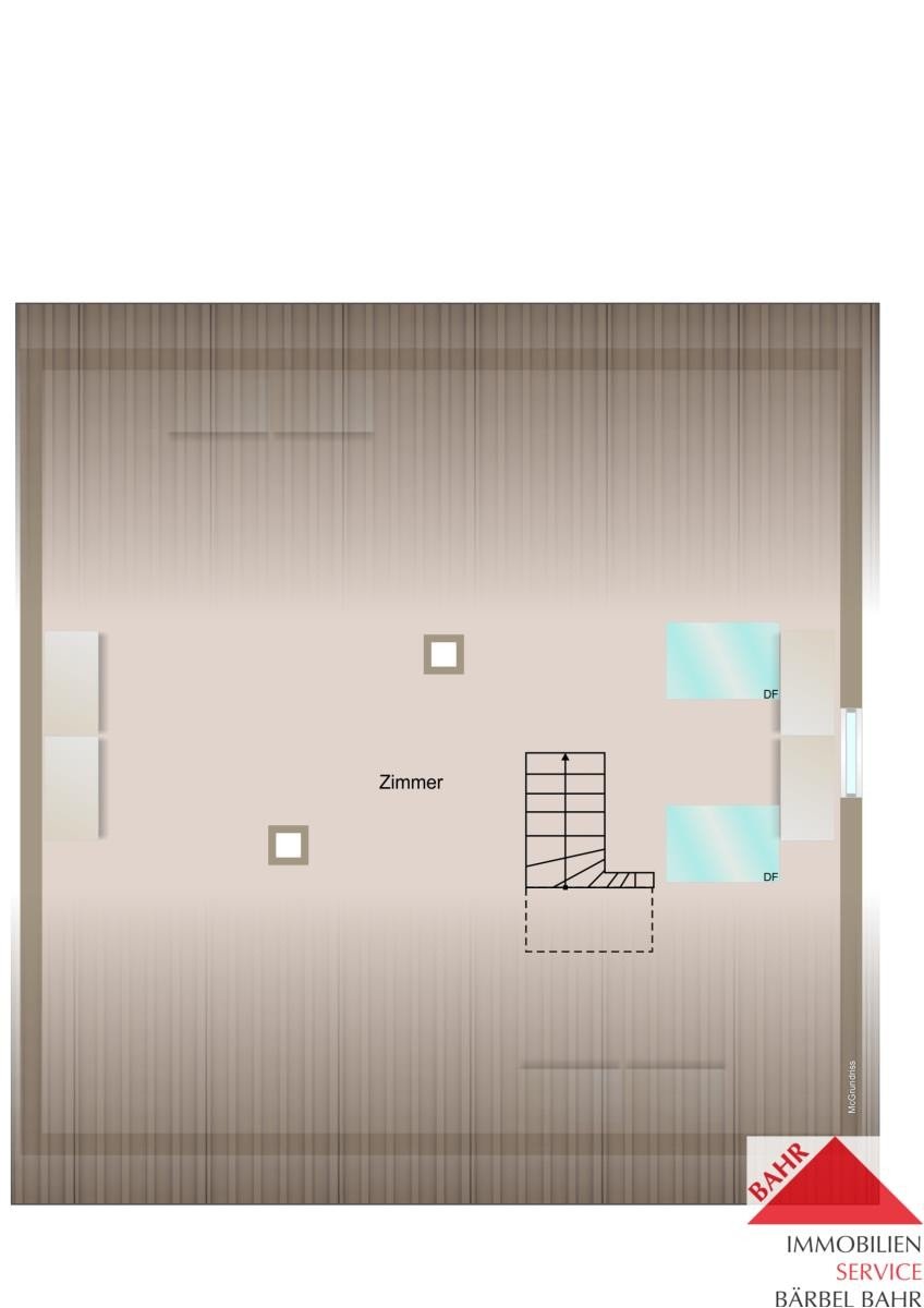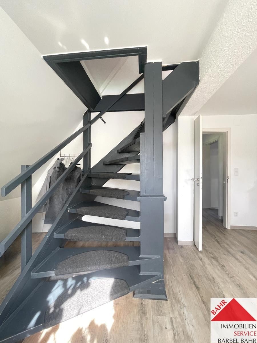 Hier wohnen Sie auf 48 qm im 1. Dachgeschoss und kommen dann über eine Wendeltreppe nach oben und haben oben ein Dachstudio mit weiterer Fläche.