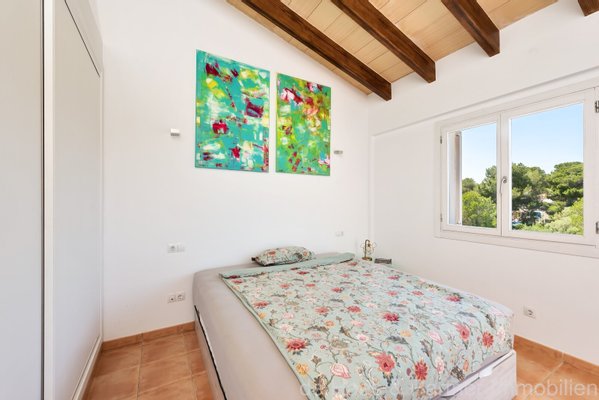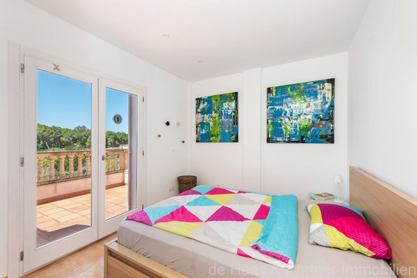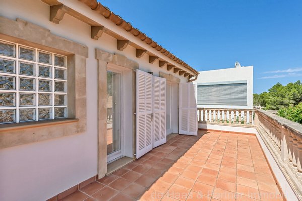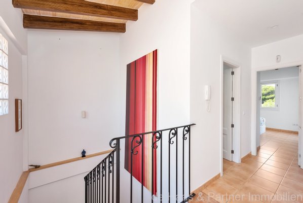 Obergeschoss: Über eine schöne Steintreppe gelangt man in die obere Etage, auf der sich drei weitere Schlafzimmer befinden, die jeweils einen Zugang zu einer Außenterrasse haben. Von dort hat man im vorderen Bereich des Hauses einen kleinen Meerblick und kann fantastische Sonnenuntergänge genießen.