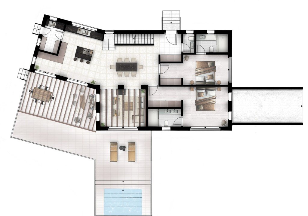 Die Villa wurde so konzipiert, dass sie sowohl Komfort als auch Stil bietet. Sie wird vier Doppelschlafzimmer, vier Bäder, eine 45 m² große Terrasse und einen offenen Wohn-, Ess- und Küchenbereich haben.